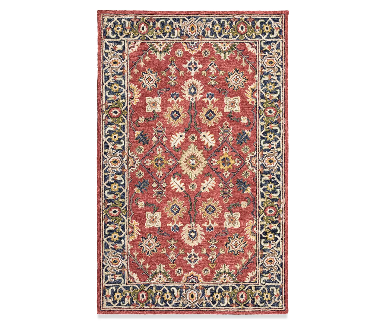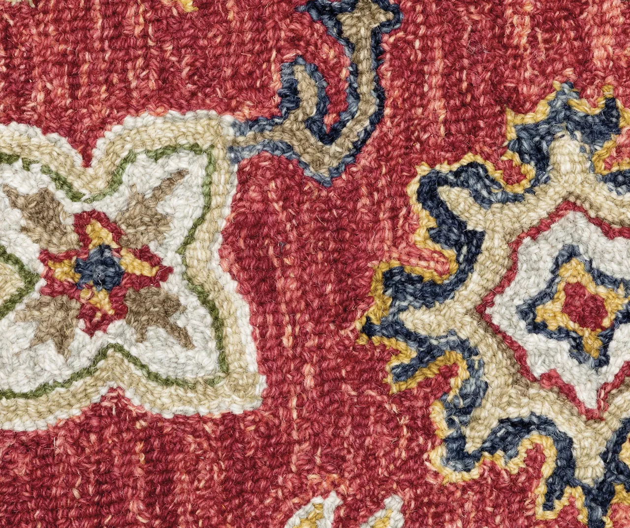The Alfio collection features warm, sun-washed shades of red, clay and gold as well as soft, muted shades of gray, blue and green for an elegant yet rustic look. Beautifully hand-crafted of space-dyed wool in India, Alfio offers traditional Bohemian designs with a luxurious looped pile for added texture to enhance any room setting.