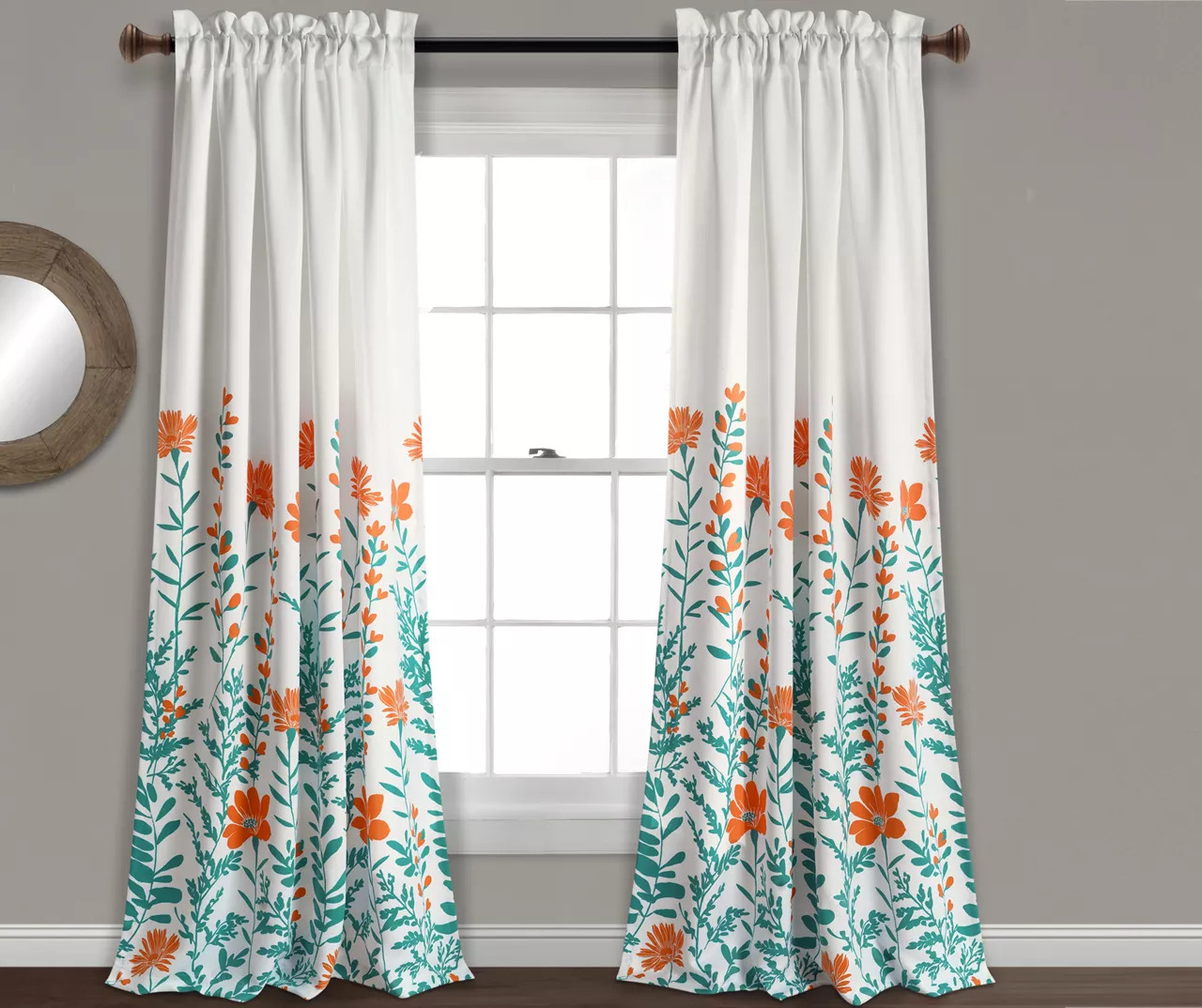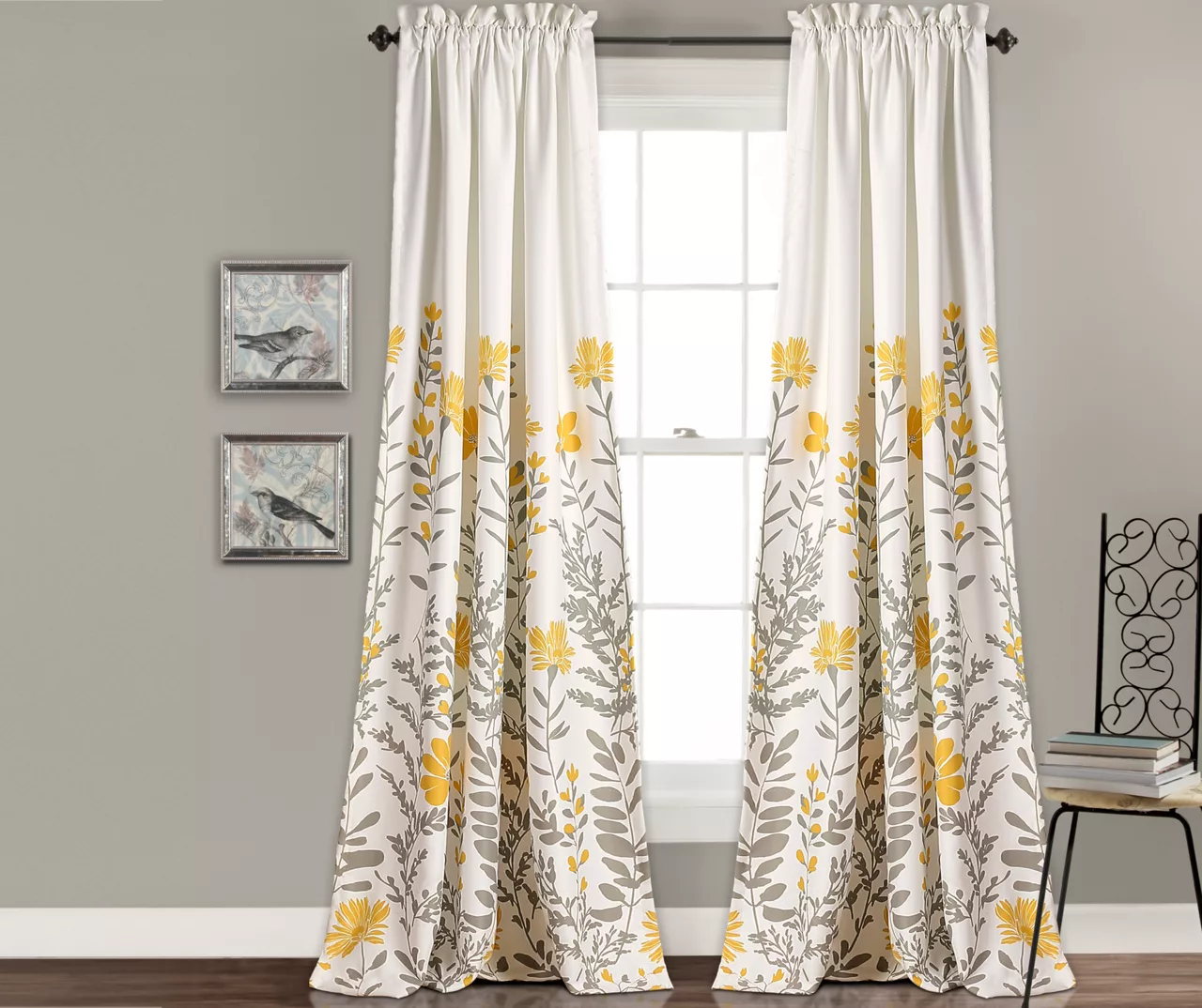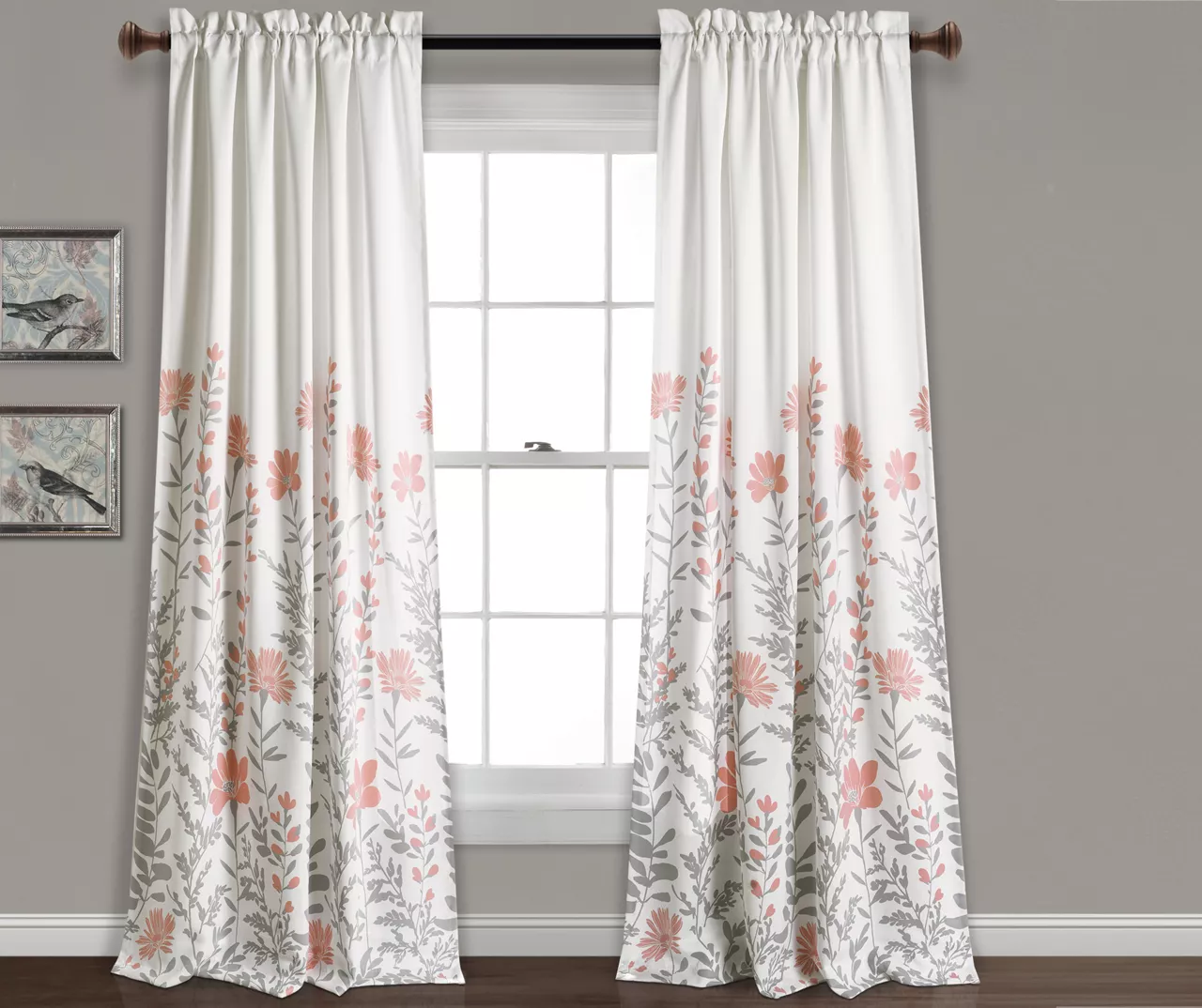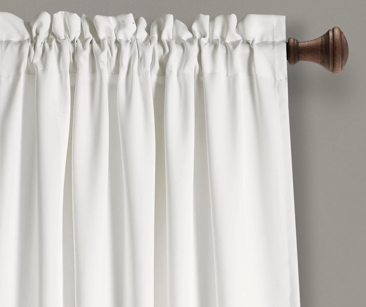 - Room-darkening curtain panels help filter out sunlight and provide privacy