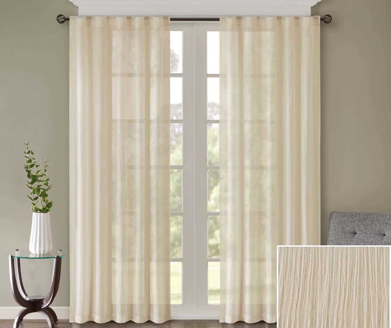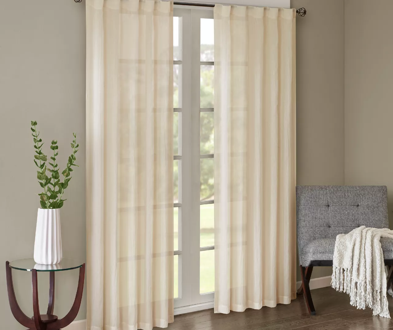 - Lightweight sheer fabric softly filters light