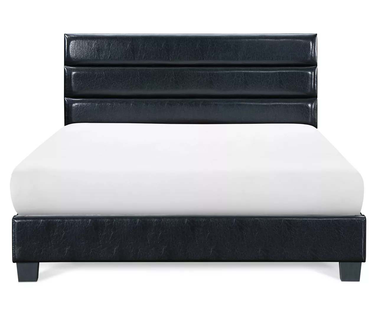 - Black bonded leather upholstered queen bed