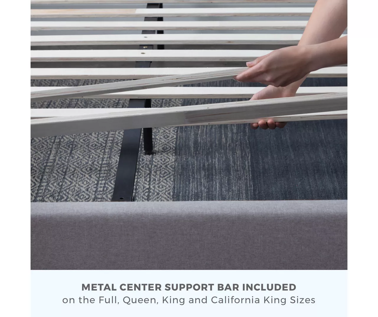 The Amelia upholstered triple-lined platform bed by Brookside combines functional durability and timeless style to bring you a beautiful bed for any bedroom in your home. This bed comes shipped in a box with everything you need to easily set it up on your own or with a partner. Complete with a supportive slat roll, decorative and sturdy legs, thick side and foot rails, a beautiful, padded headboard and all other necessary hardware, this bed will revolutionize the way you sleep and decorate. With a center support system, this bed goes above and beyond to provide the reliable support and comfort you deserve.
