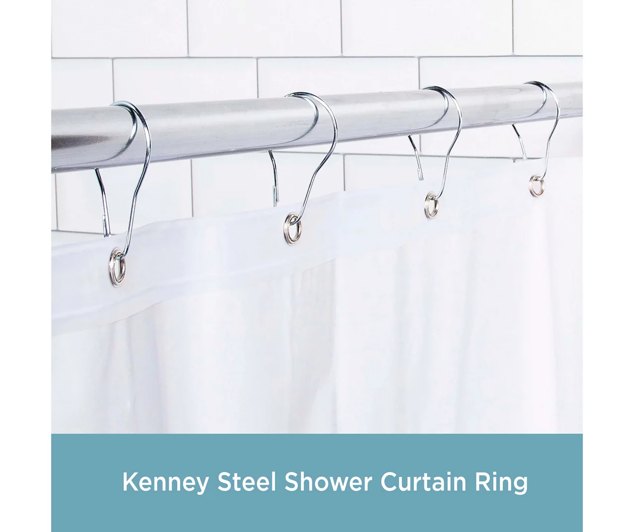 These Kenney® shower curtain rings are designed to coordinate with many bathroom hardware finishes through their polished chrome finish and simple design. Their slender shape fits all standard shower liners and rods, and they’re made in the USA from durable stainless steel.