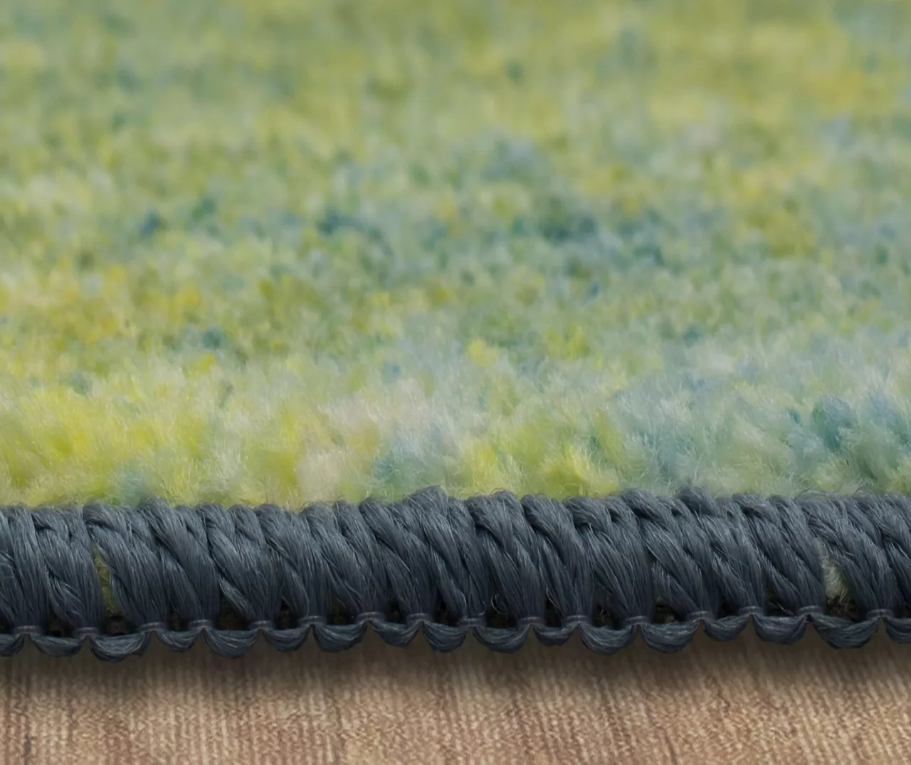 Mohawk takes abstract art to the floor with this lovely Decollage area rug featuring an abstract design in splashes of pure white, light aqua, lime green, indigo blue, dark navy, neutral beige and chocolate brown. Thoughtfully crafted in the U.S.A. utilizing Mohawk Home’s exclusive precision dye-injected printer, this rug is designed on a plush EverStrand™ tufted base made from premium recycled polyester. A non-skid latex backing helps to keep things in place, and the low pile is durably designed to easily work with doorways or furniture while withstanding everyday use.