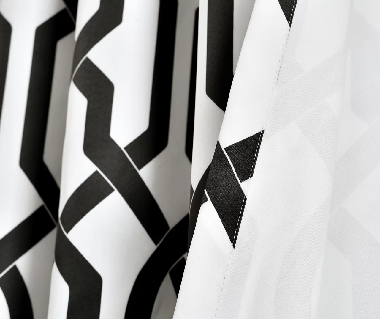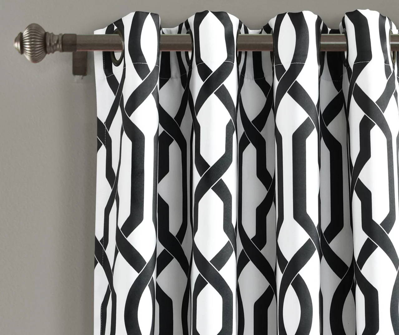 Enhance your decor with modern trellis window curtains. These energy-efficient room-darkening panels block sunlight, which leads to better temperature regulation of the room. The chic contrast of black and white makes a stunning statement in the living room, bedroom, dining room or office.