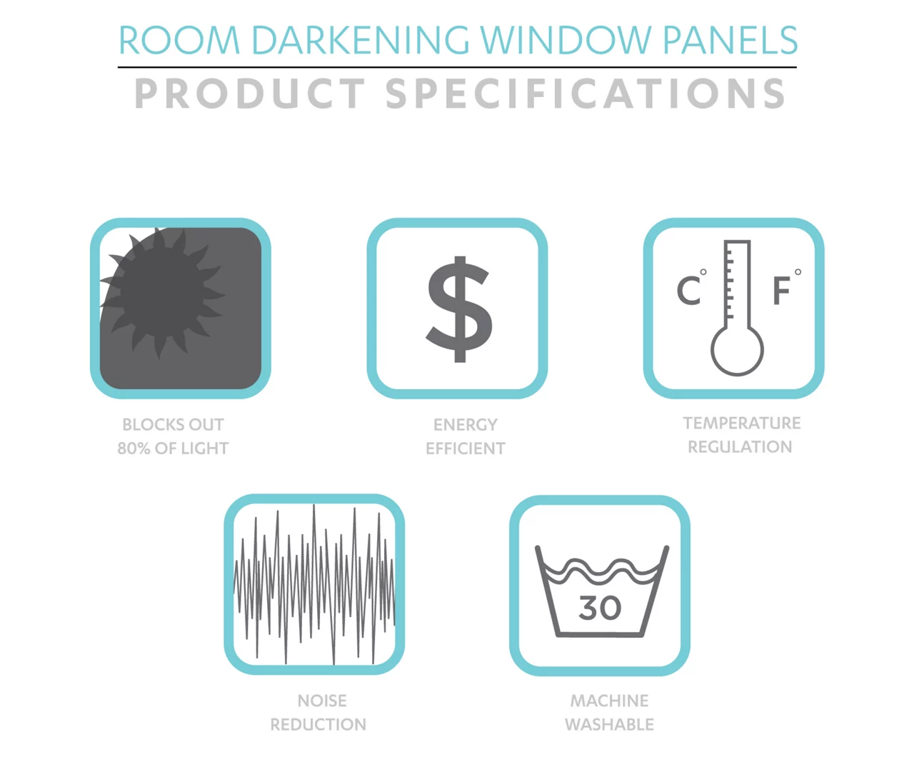 - Room-darkening curtain panels help filter out sunlight and provide privacy