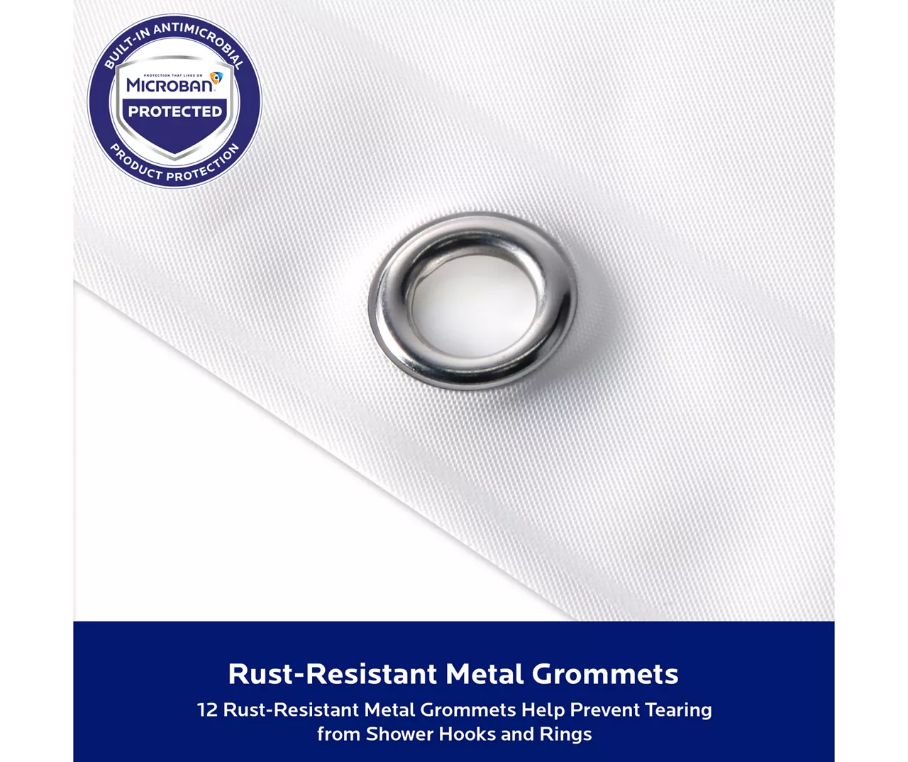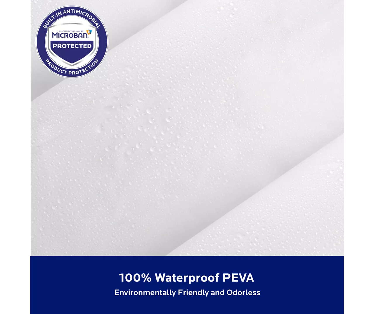 The Kenney® medium-weight PEVA shower liner with Microban® antimicrobial technology inhibits the growth and reproduction of odor-causing bacteria, mold and mildew and provides enhanced product protection from microbes. This shower liner is made to fit most standard tubs and is crafted from sturdy PEVA topped by 12 rust-resistant metal grommets. A weighted hem helps keep the liner in place and reduces billowing.