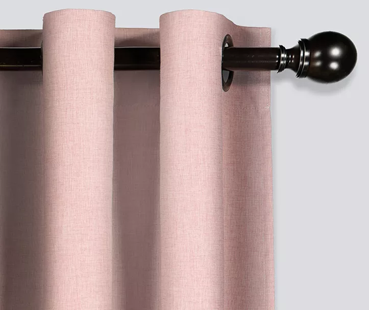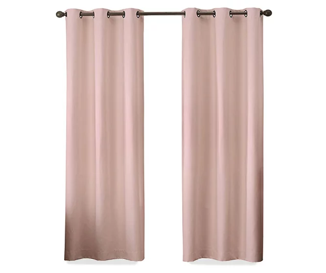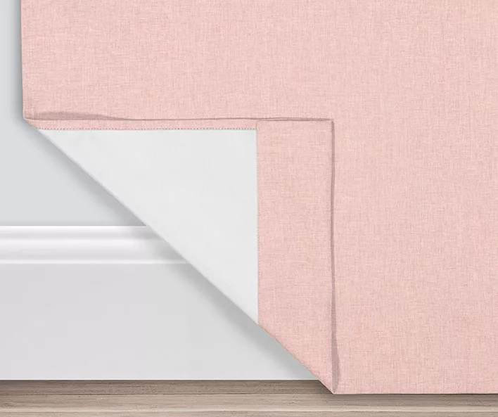 Find the perfect combination of fashion and function with the blush Gabriella window curtain from Eclipse. This beautiful panel offers Absolute Zero 100% blackout benefits and features a textured, tonal solid fabric in pink. It’s perfect for the bedroom, living room, dining room or office. Innovative foam backing is applied to the fabric and allows you to enjoy all of the light-blocking, noise-reducing and energy-saving benefits, while providing the same fashionable style and elegance of naturally flowing curtains.