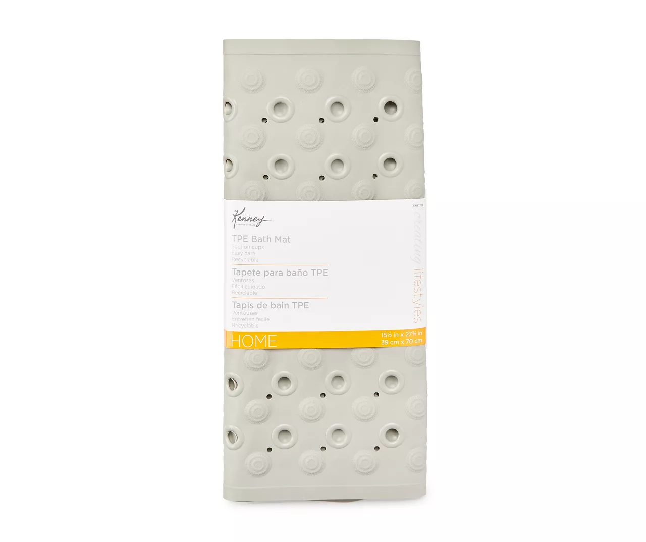 Complement your bathroom décor with this Kenney® non-slip bath mat designed to be a comfortable option for inside your tub or shower. It’s machine-washable and features suction cups along the bottom to help to keep the mat in place. The soft TPE material provides additional comfort for your feet in the shower and is meant to be used on smooth surfaces in standard showers or tubs.