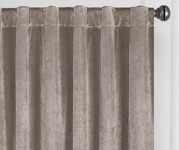 Find the perfect combination of fashion and function with the Eclipse Harper window curtain. This beautiful panel offers Absolute Zero 100% blackout benefits with a premium thermal lining that gives a rich handfeel and provides luxurious drapability. It features solid velvet fabric in brown, which makes it versatile and perfect for the bedroom, living room, dining room or office and allows you to enjoy all of the light-blocking, noise-reducing and energy-saving benefits. Reverse of panel is light gray.