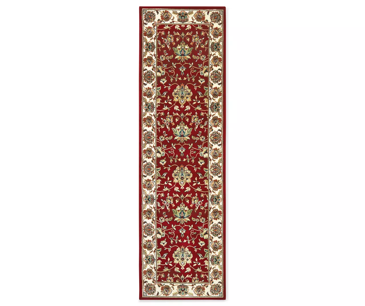 Enhance your space with this rug that showcases a timeless floral design in fresh colors of alabaster, true red, deep Atlantic blue and black with accents of terracotta, soft gold and sage. It boasts traditional Persian patterns and time-honored classics for a relaxed yet sophisticated interior. Machine-made of polypropylene, it has a soft, luxurious feel and dense pile. Imported from Egypt.