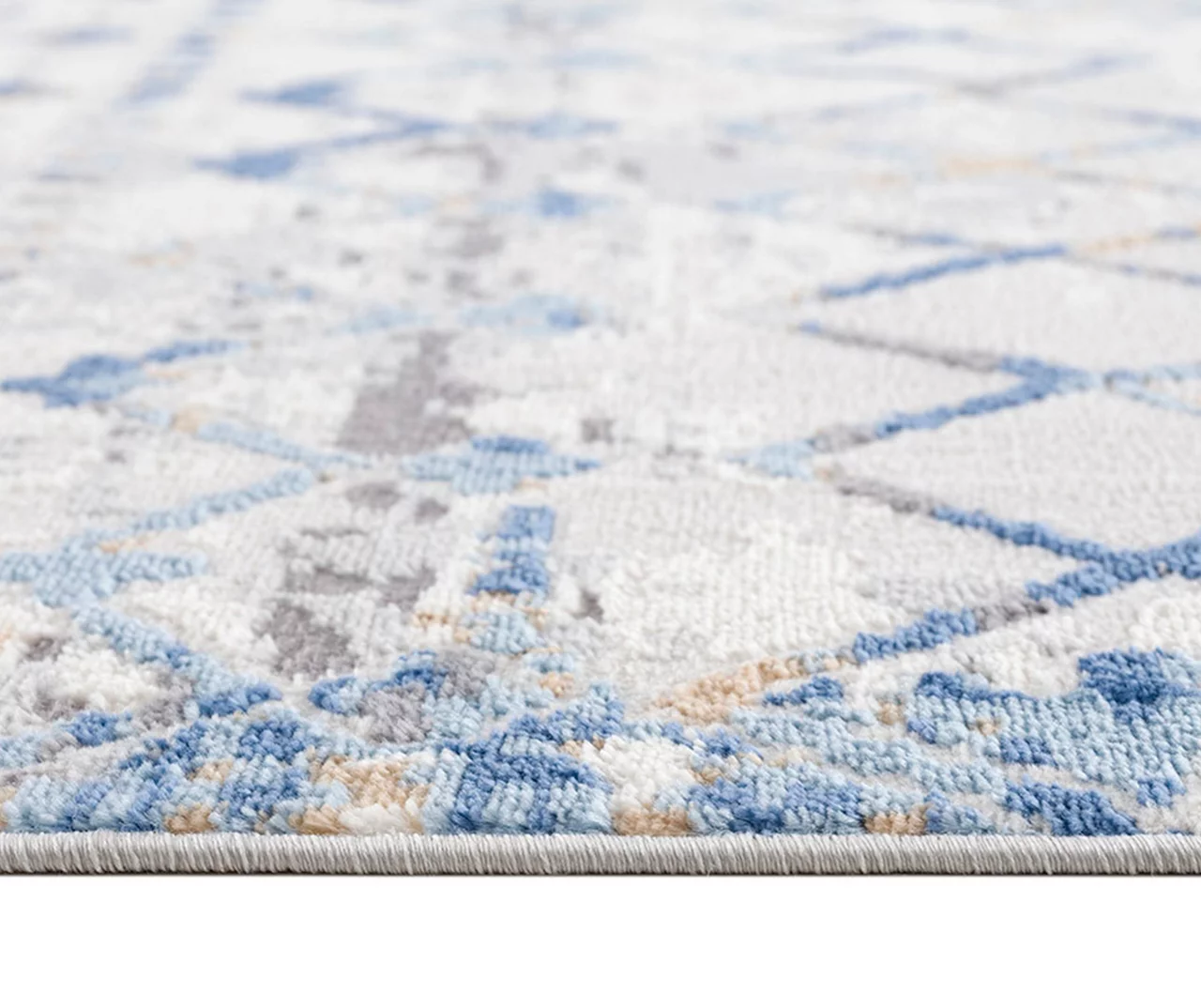 Add fashionable style to your living space with the Jessica Moroccan area rug. This machine-woven rug features a blue and cream globally inspired print creating a beautiful boho-inspired look for a splash of color and texture. The medium soft pile makes this area rug well-suited to high-traffic areas in your home. Transparent sprayed latex on the reverse side helps prevent this rug from sliding, but a rug pad is still highly recommended to keep the rug in place.