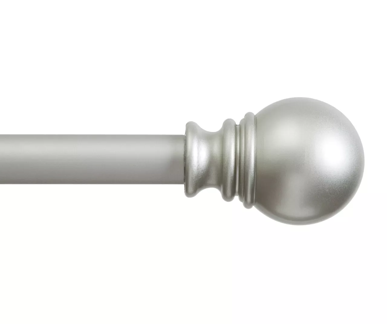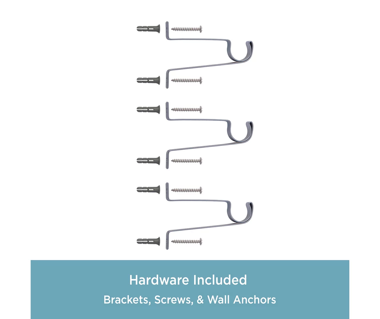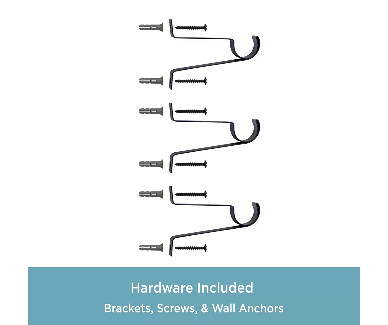 - Includes 1 telescoping curtain rod with finials, 2 brackets, 1 center support, screws, drywall anchors and installation instructions