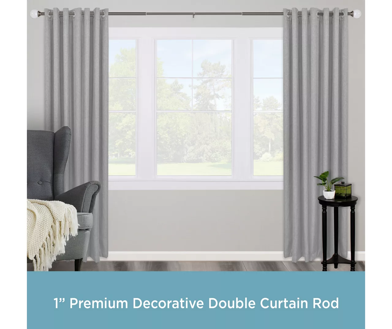 - 1″ diameter curtain rod adjusts from 48-86″ and includes adjustable brackets that project 3.75-5.75″ from the wal