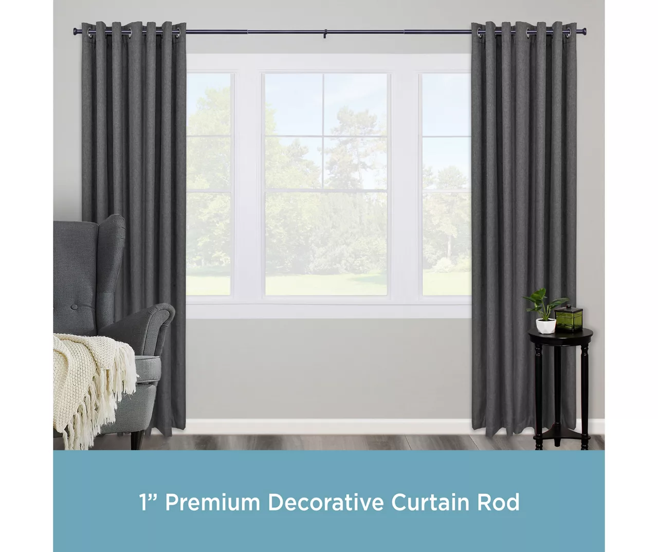 - 1″ diameter curtain rod adjusts from 28-48″ and projects 4.4″ from the wall