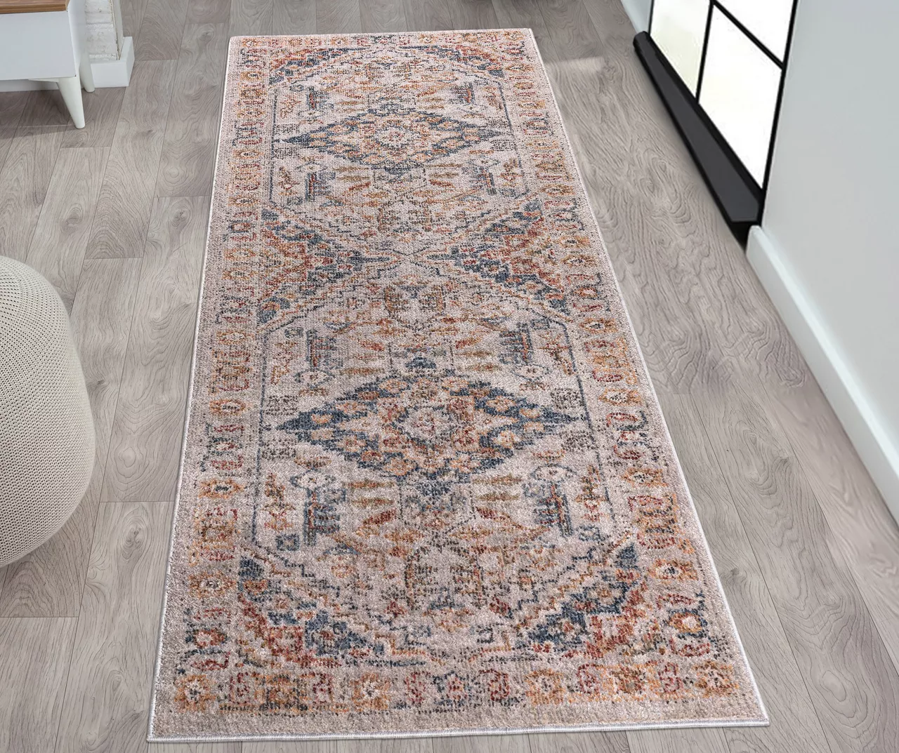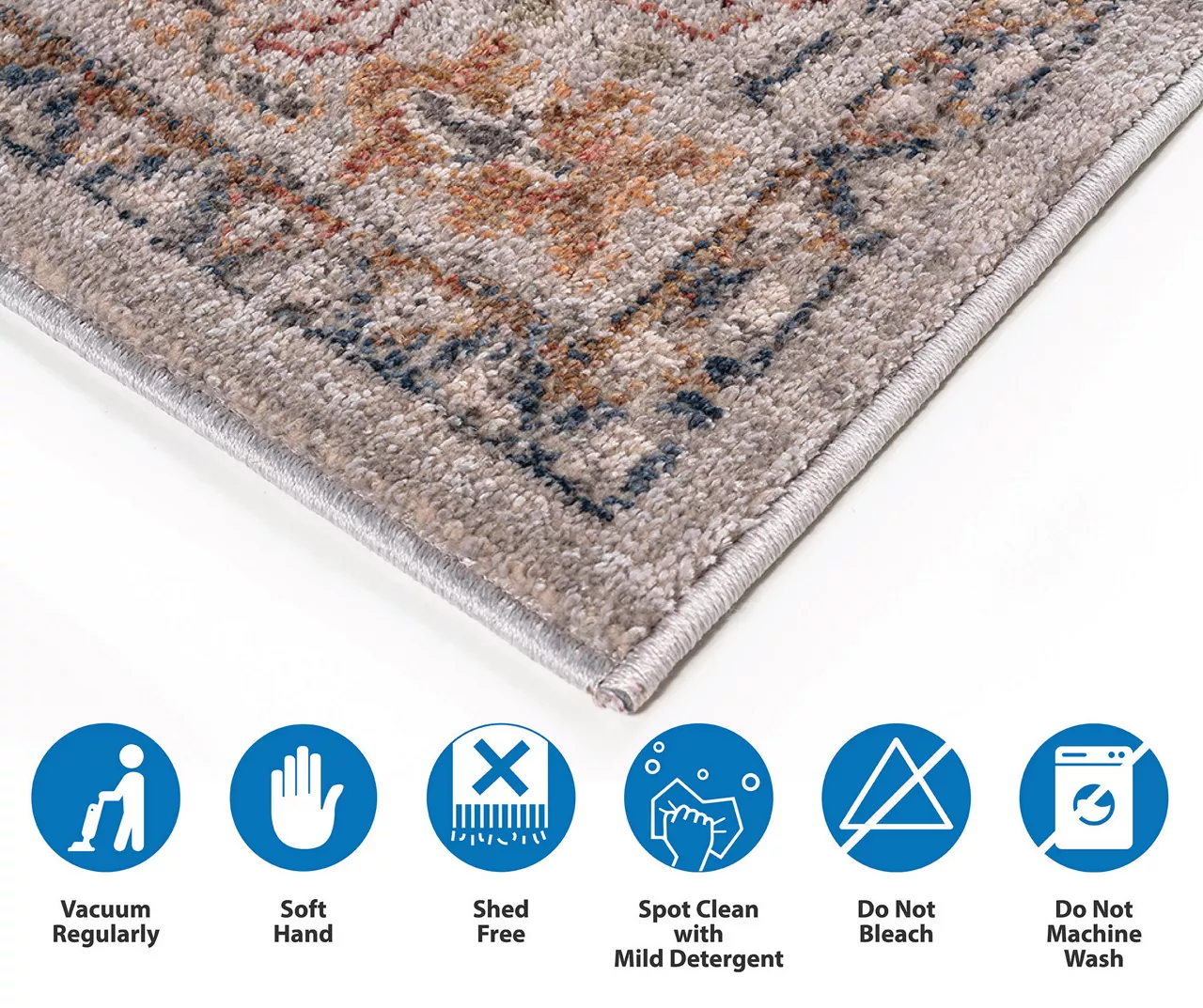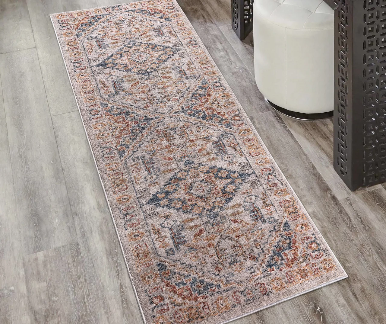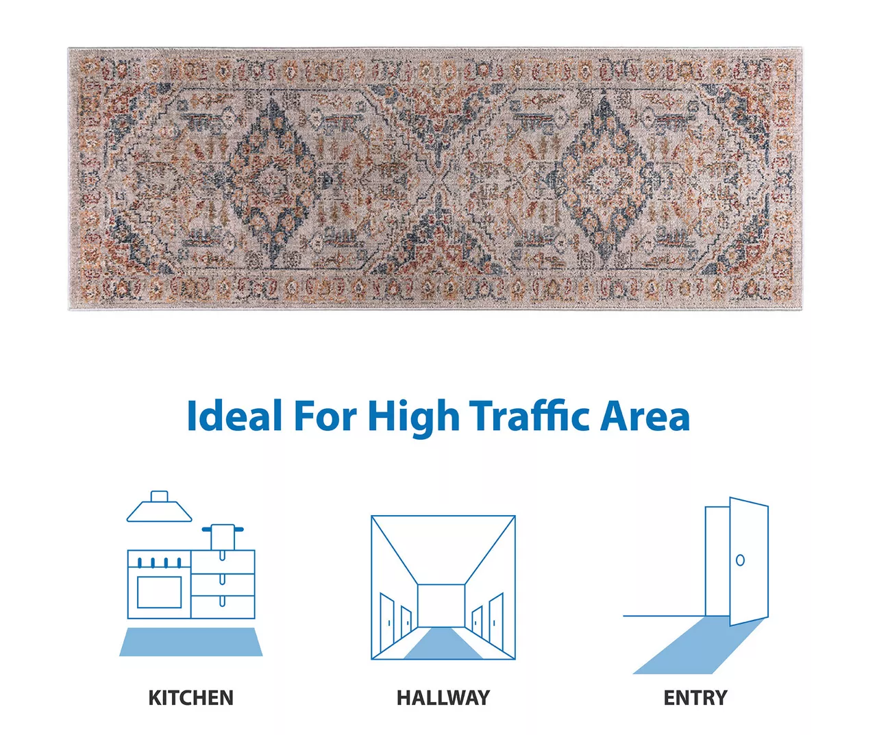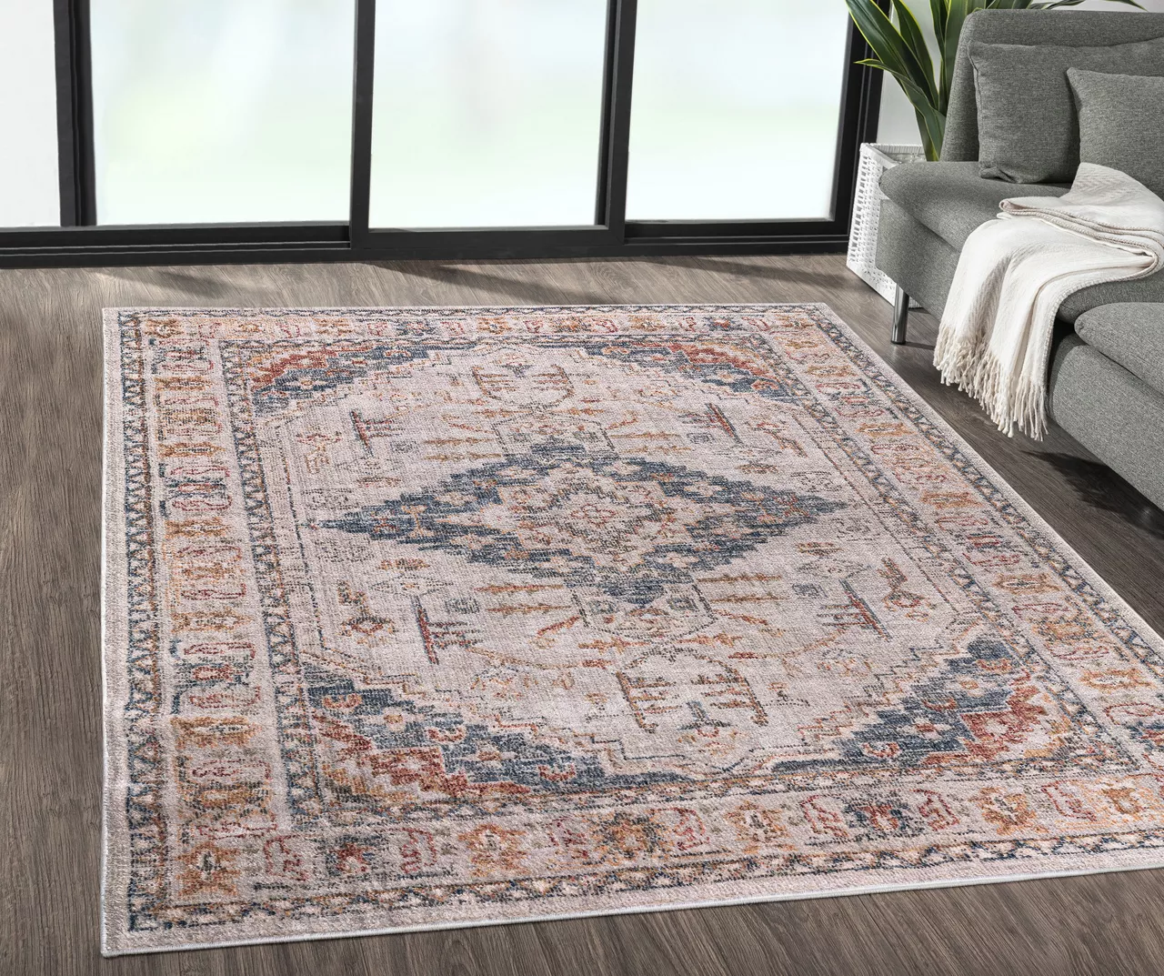 The Larissa area rug offers a sophisticated update to your home through its beautiful vintage medallion pattern in rich orange and navy tones, for a stunning a globally inspired look. The soft, medium pile makes this machine-woven rug well-suited for high-traffic areas, while the transparent sprayed latex reverse helps keep the rug from sliding. A rug pad is still highly recommended to keep the rug in place. Resistant to staining and fading, this woven area rug is perfect for your living room, family room, or entryways.