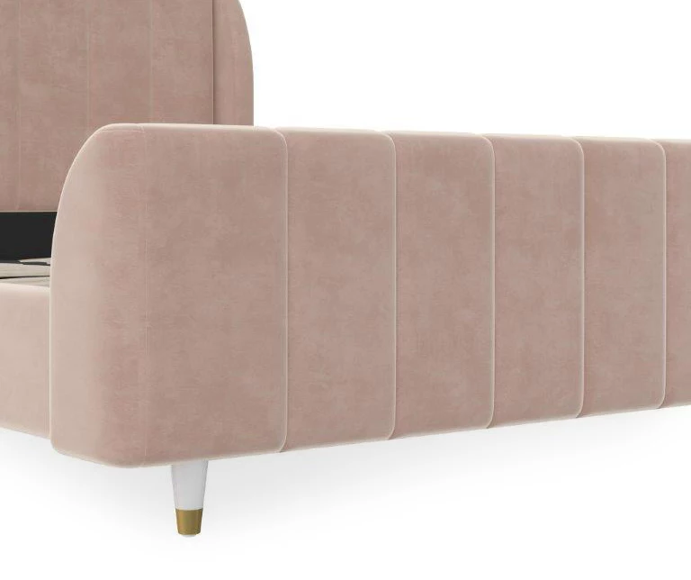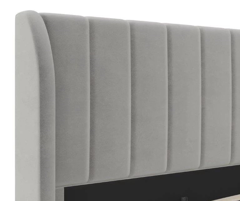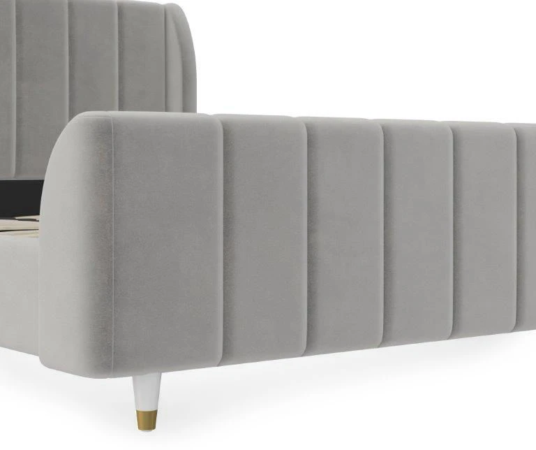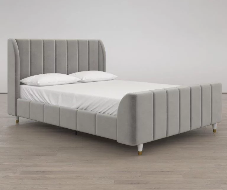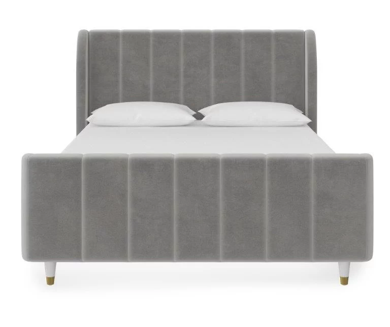 - Mid-century modern wingback design with vertical channel tufting on the headboard, footboard and side panels