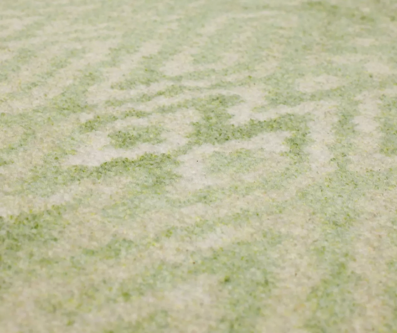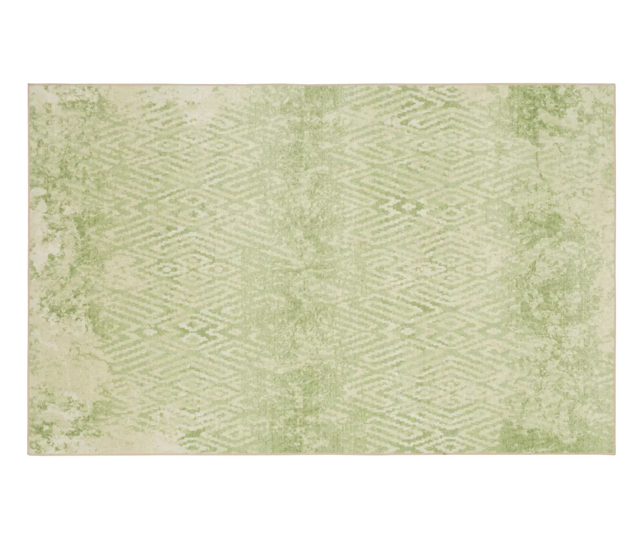 - A distressed geometric pattern in bright shades of green and white for a vintage boho look