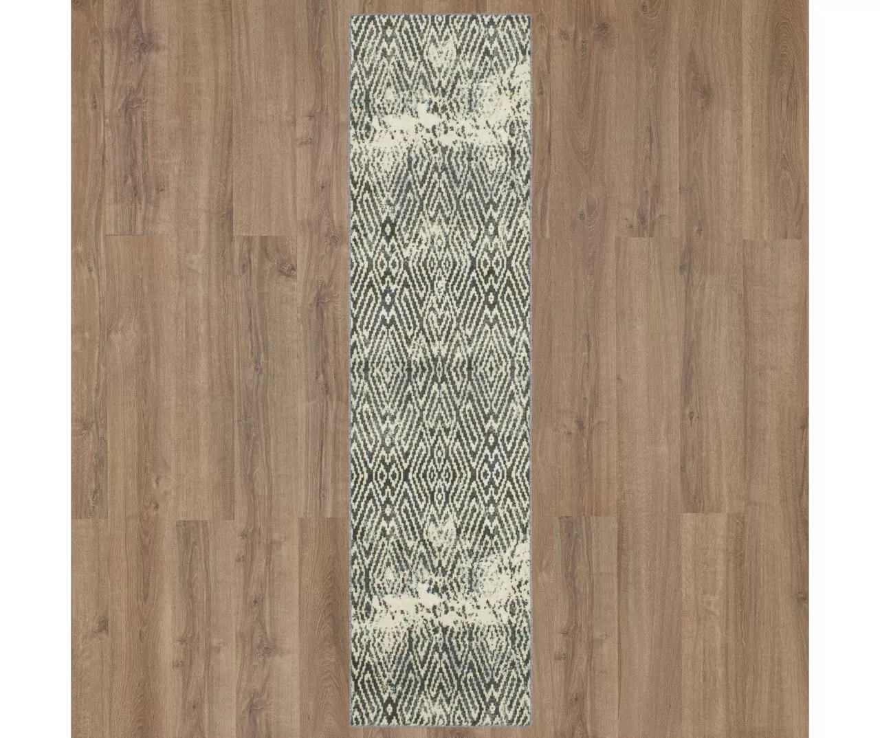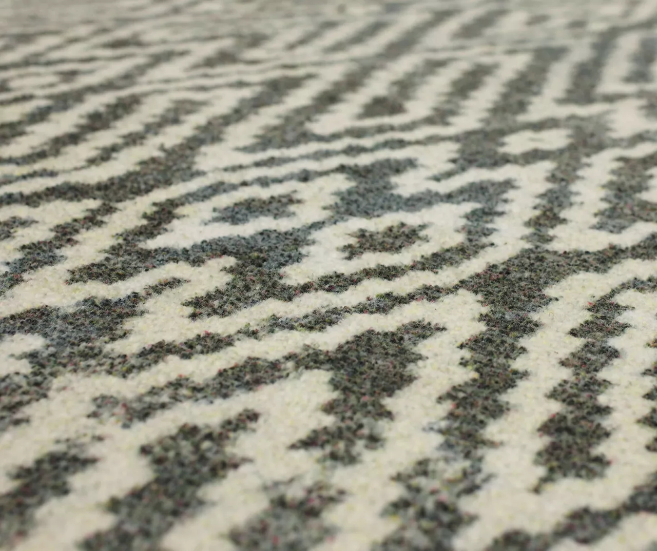 - Distressed geometric pattern in shades of gray and white for a modern boho look