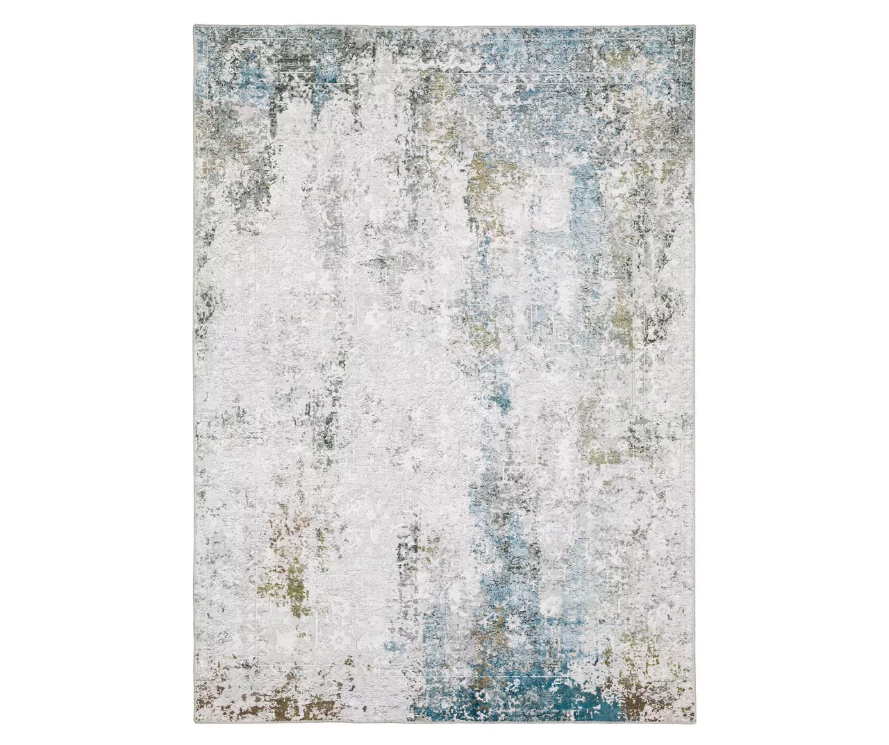 The Malcalm collection, machine-made from soft polyester, features an innovative printed base with non-slip backing that is perfect for high-traffic areas and family living spaces. With its low pile and intricate blanket stitch finish, this rug showcases a contemporary abstract design in rich blue, green and warm ivory and gray hues with a distressed look that effortlessly complements any room in your home.