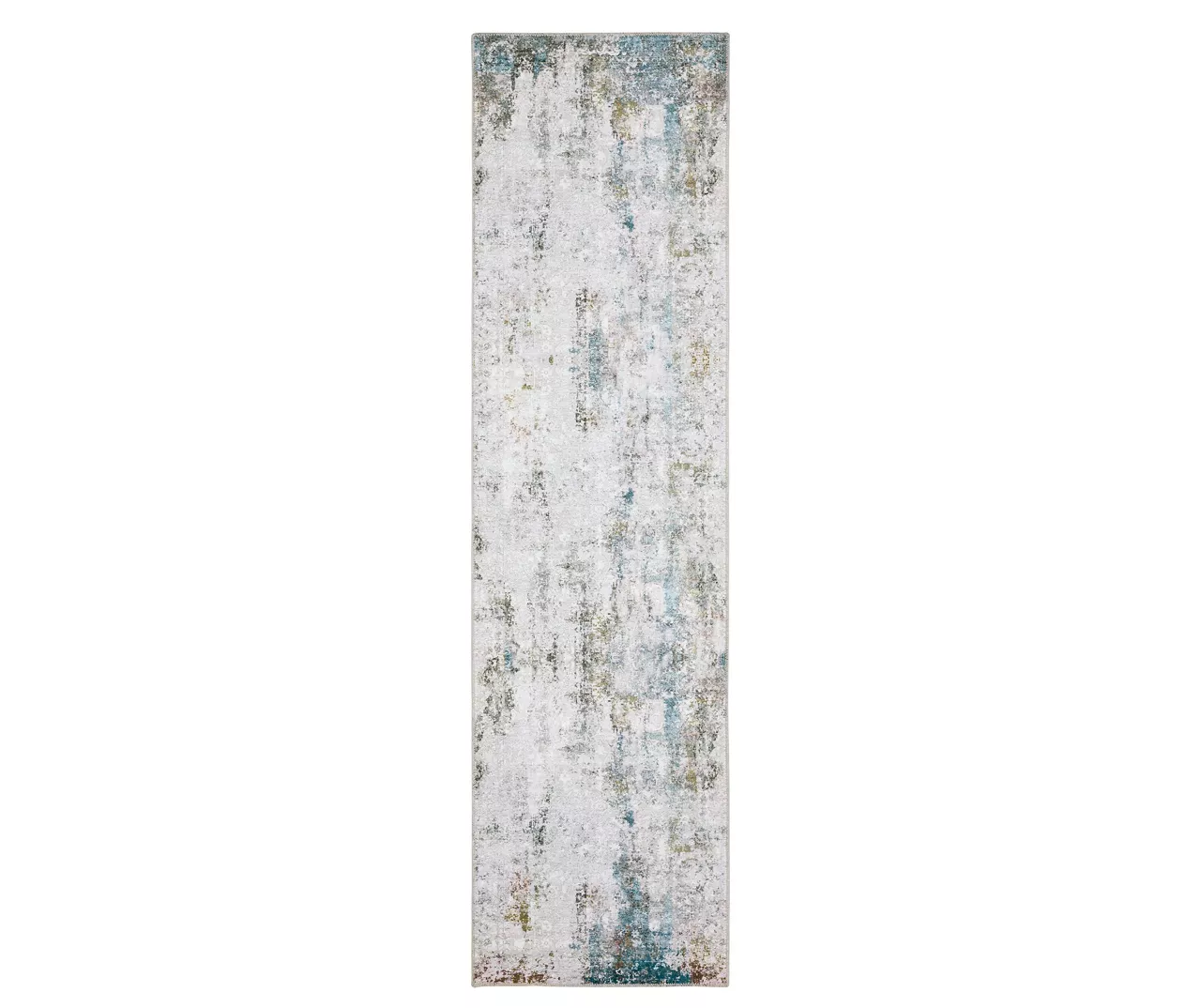 The Malcalm collection, machine-made from soft polyester, features an innovative printed base with non-slip backing that is perfect for high-traffic areas and family living spaces. With its low pile and intricate blanket stitch finish, this rug showcases a contemporary abstract design in rich blue, green and warm ivory and gray hues with a distressed look that effortlessly complements any room in your home.