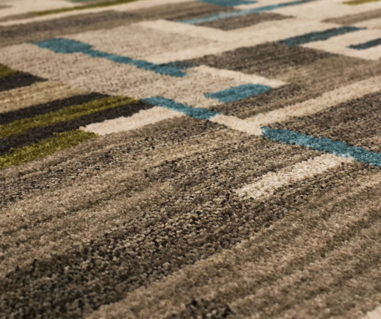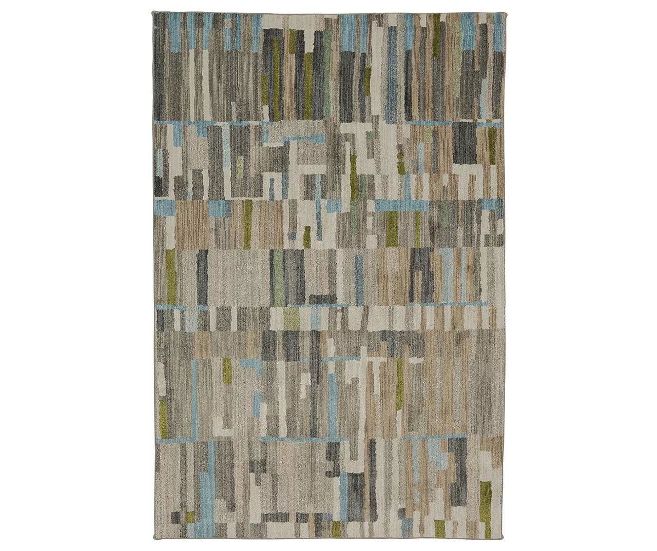 Featuring an abstract geometric motif with a modern mélange of color, the Baccitus area rug from Mohawk boasts shades of aqua, celery green, gunmetal gray, oat and oyster. Designed with Mohawk’s exclusive EverStrand™ recycled polyester yarn, the styles of the Muse Collection offer a sumptuous softness, superior stain resistance and dependable durability.
