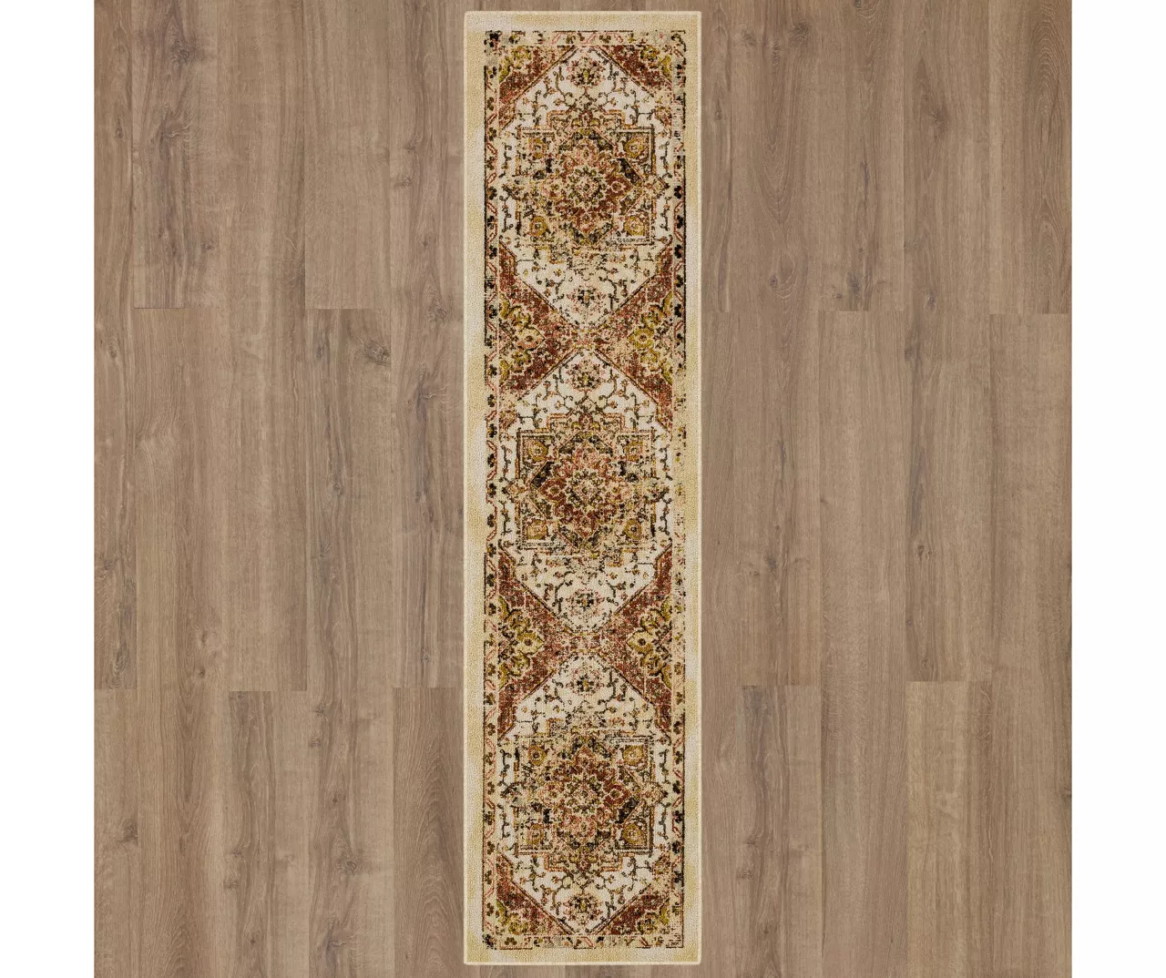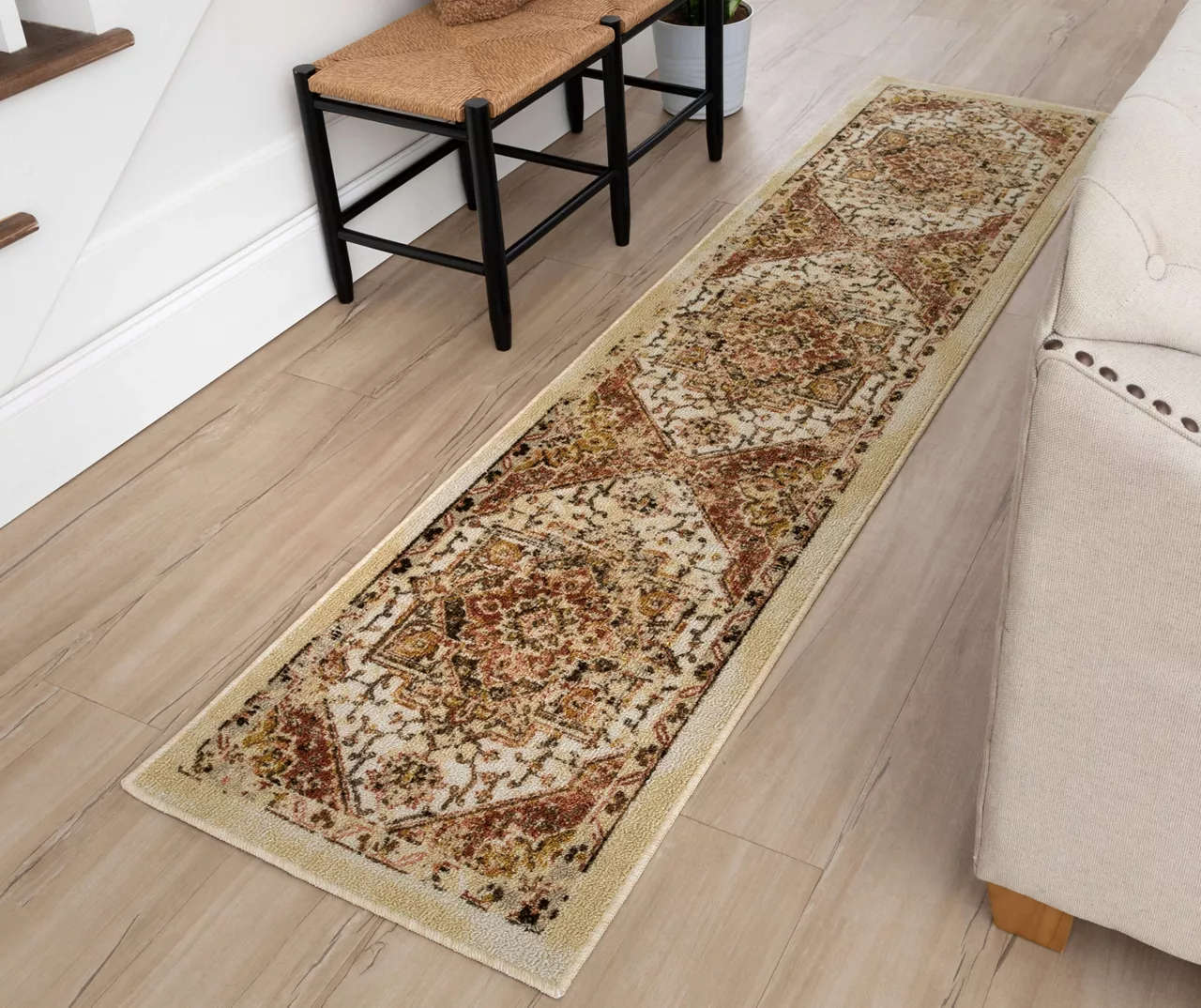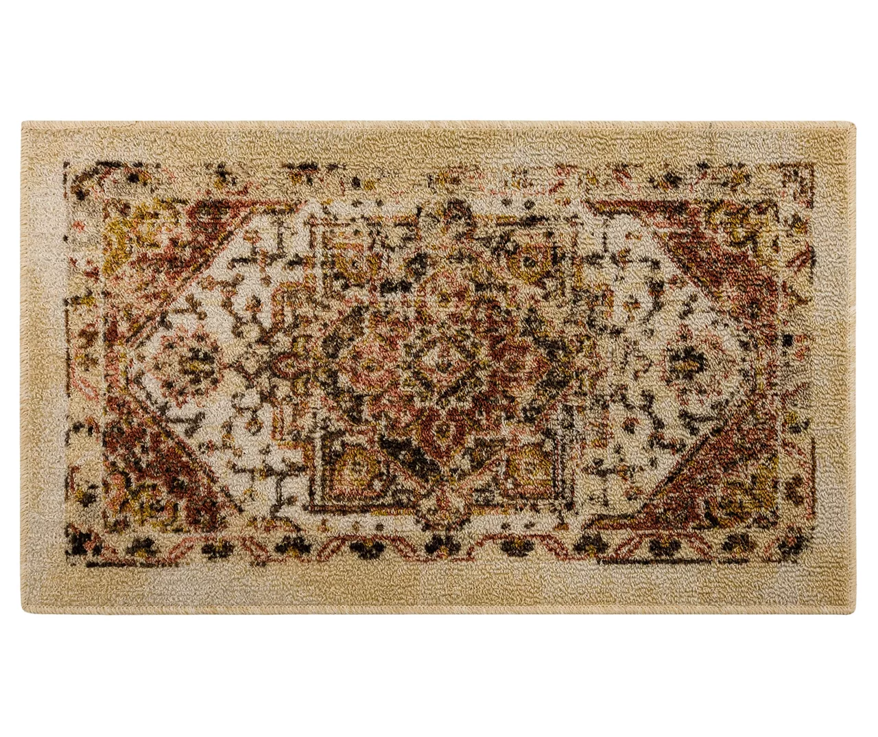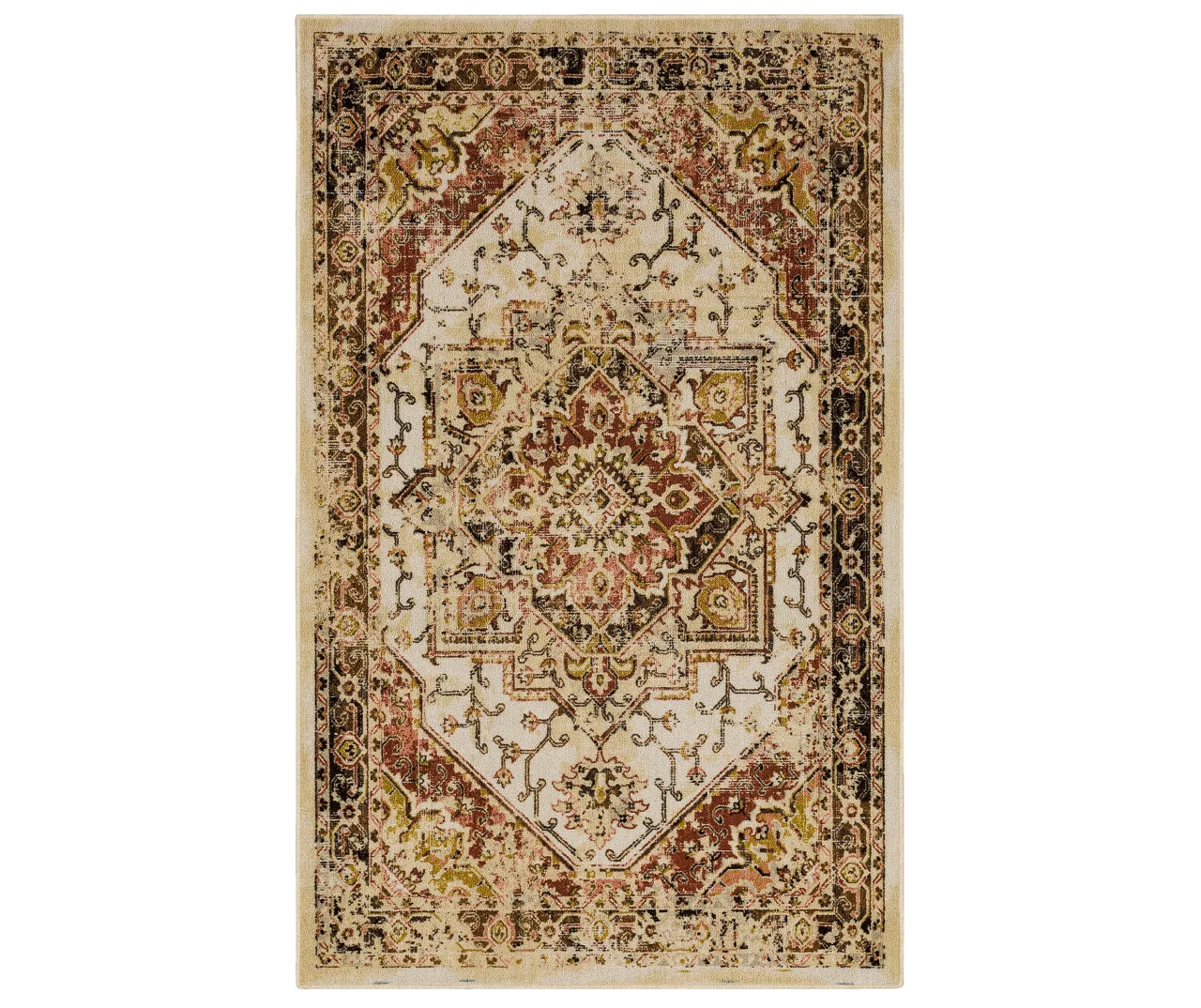 The Mohawk Home De Soto area rug features an ornamental geometric and floral design in a versatile earthen palette that is sure to perfectly accent any room. The low pile is created with Mohawk’s premium wear-dated nylon fiber for a soft touch and dependable durability. This rug is sure to make an elegant addition to a bedroom or other living space and the non-skid latex backing helps to keep things in place.