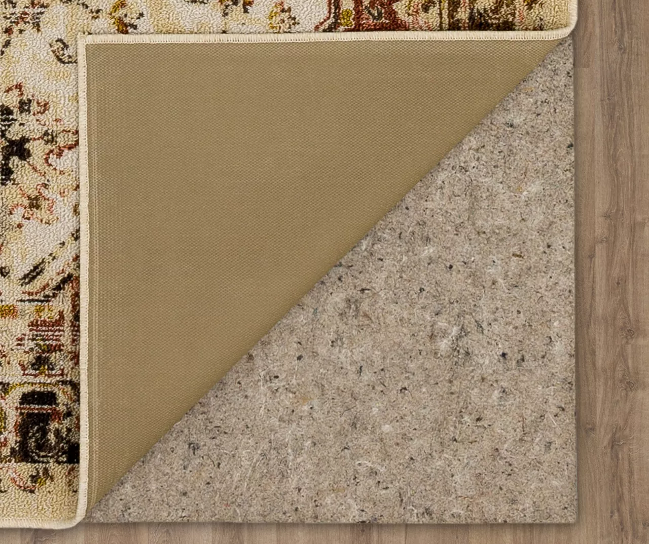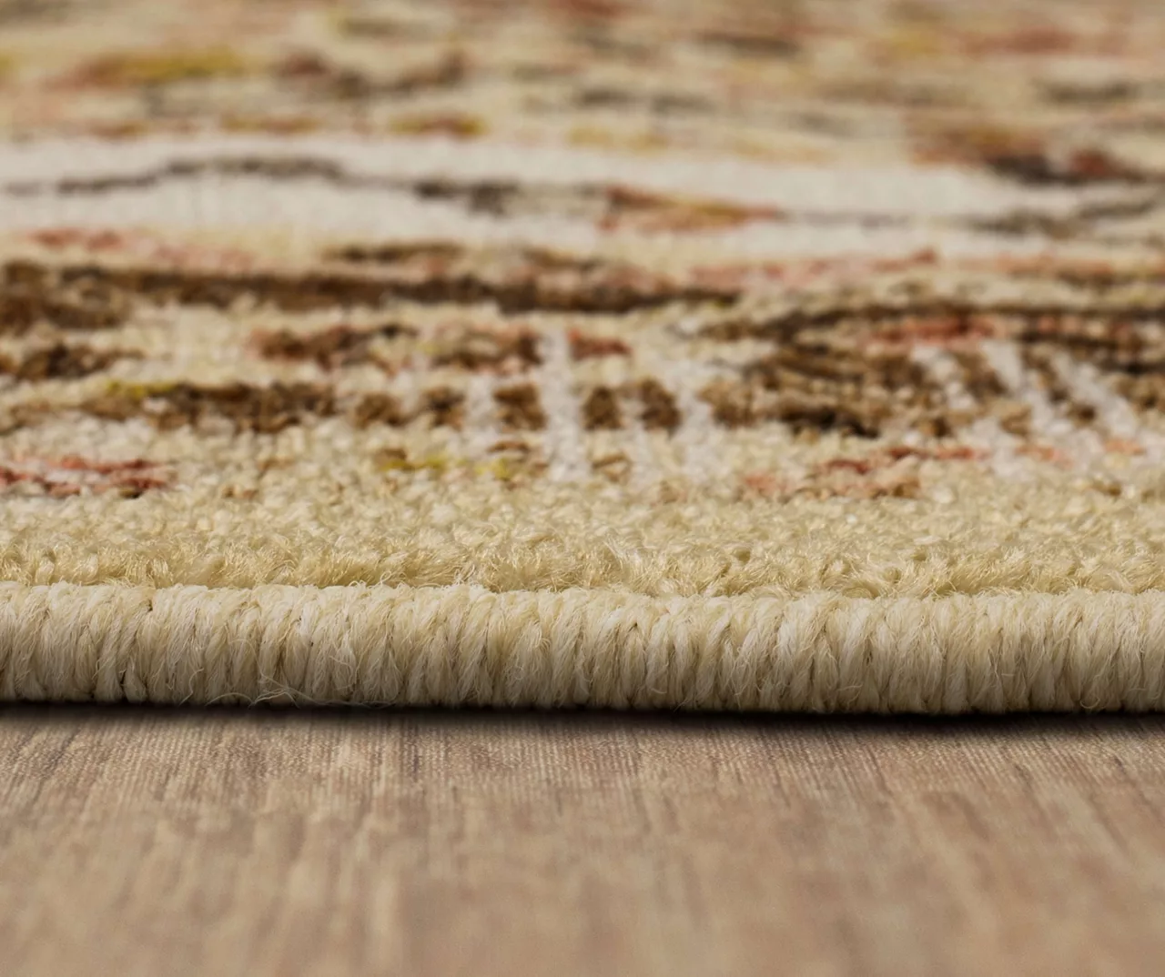 - Intricate design with geometric and floral detailing in a neutral earth-tone palette for traditional appeal