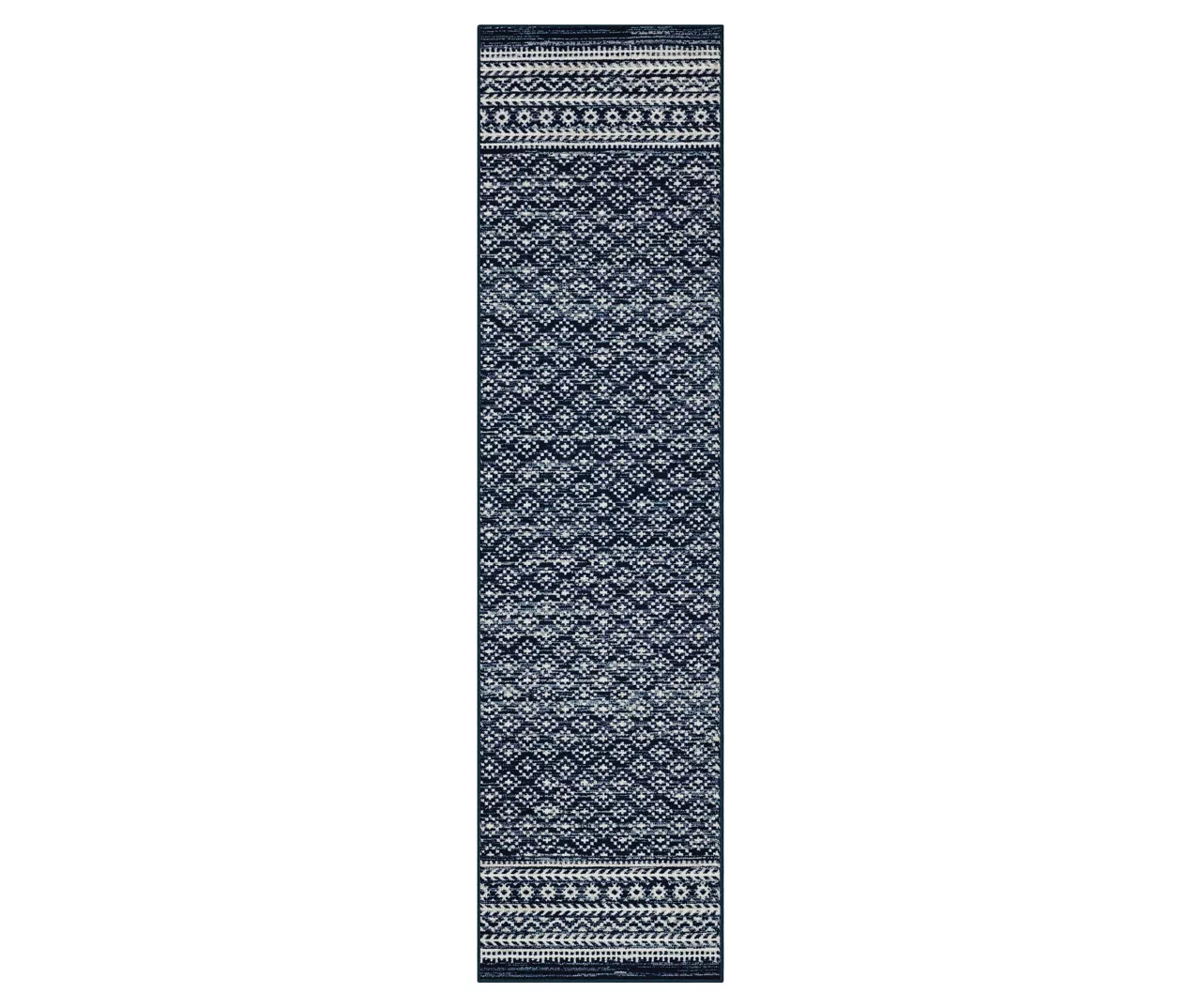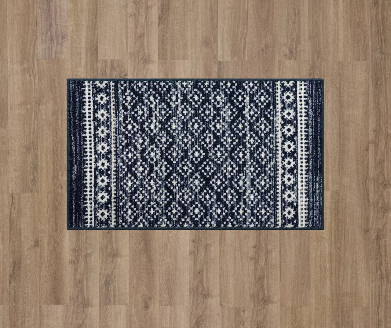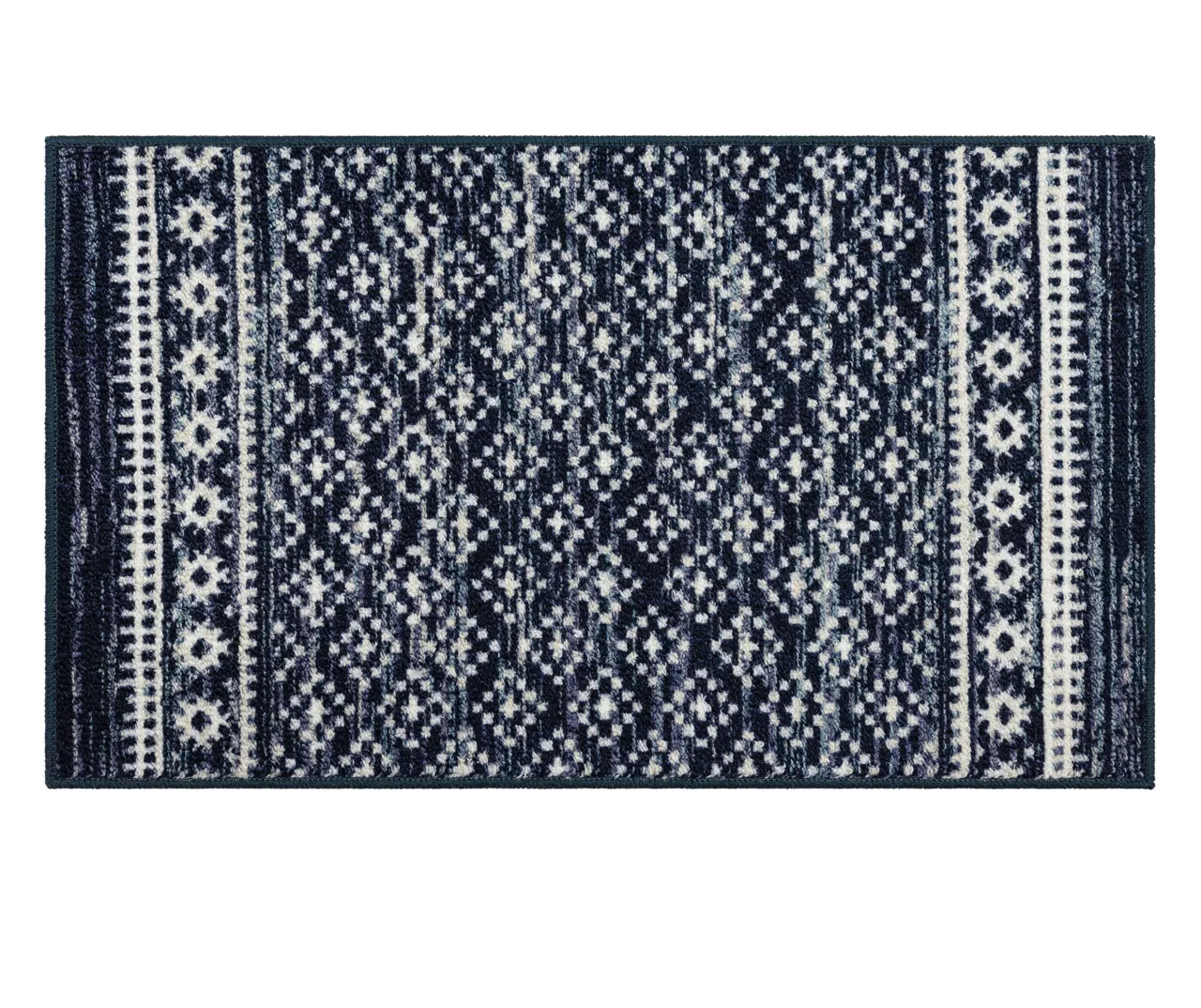 The Mohawk Home Harley Hill area rug features a geometric motif in a rich navy and white color palette that is sure to perfectly accent any room. The low pile is created with Mohawk’s premium wear-dated nylon fiber for a soft touch and dependable durability. This rug is sure to make an elegant addition to a bedroom or other living space and the non-skid latex backing helps to keep things in place.