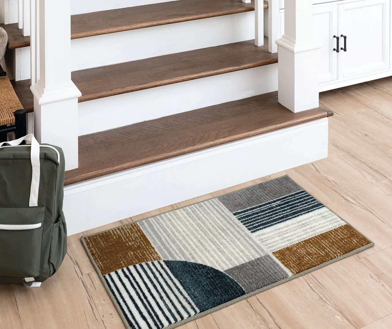 The Rain Creek area rug features a striped geometric design in a subdued, neutral color palette that is sure to easily complement any room. The low pile is created with Mohawk’s premium wear-dated nylon fiber for a soft touch and dependable durability. This rug is sure to make an elegant addition to a bedroom or other living space and the non-skid latex backing helps to keep things in place.