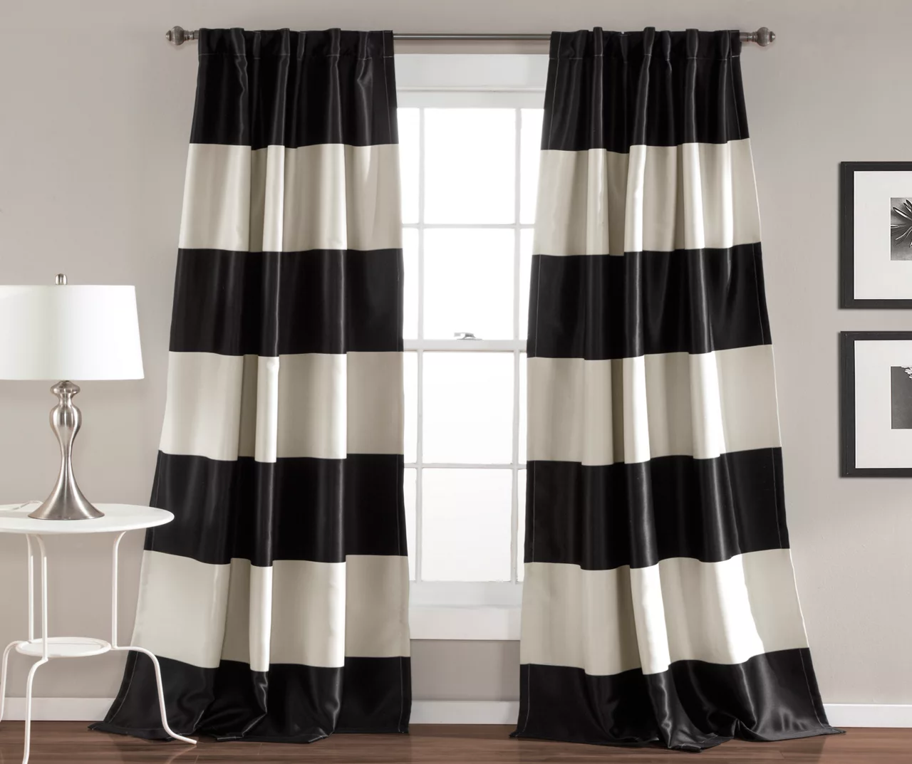 - Room-darkening curtain panels help filter out sunlight and provide privacy