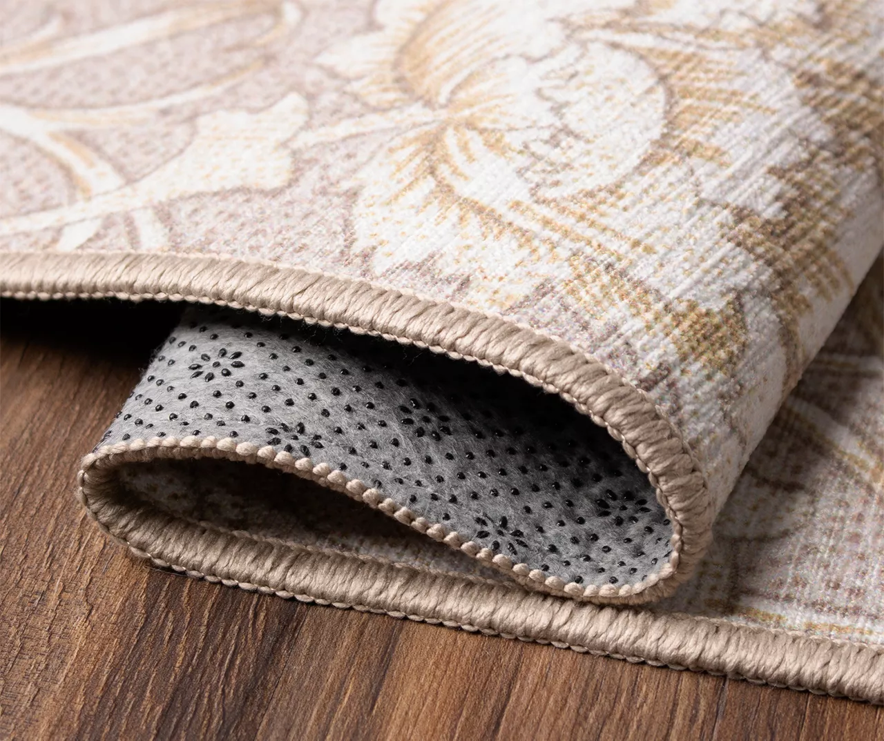 Forget about sacrificing style for function thanks to this chic rug. This neutral colored rug with repeating floral motifs is perfect for elevating the vibes of your home. Stamped with a vintage-inspired pattern and made with a universally flattering color palette, this versatile rug is the perfect option for spaces with high foot traffic, pets or little ones to consider. Protect your floors from spills and scratches and wash away germs with a full line of no-fuss rugs. My Magic Carpet is an eco-friendly alternative to traditional rugs. This rug is made of non-allergenic, stain-resistant microfiber polyester, with a waterproof inner liner and a non-slip backing.