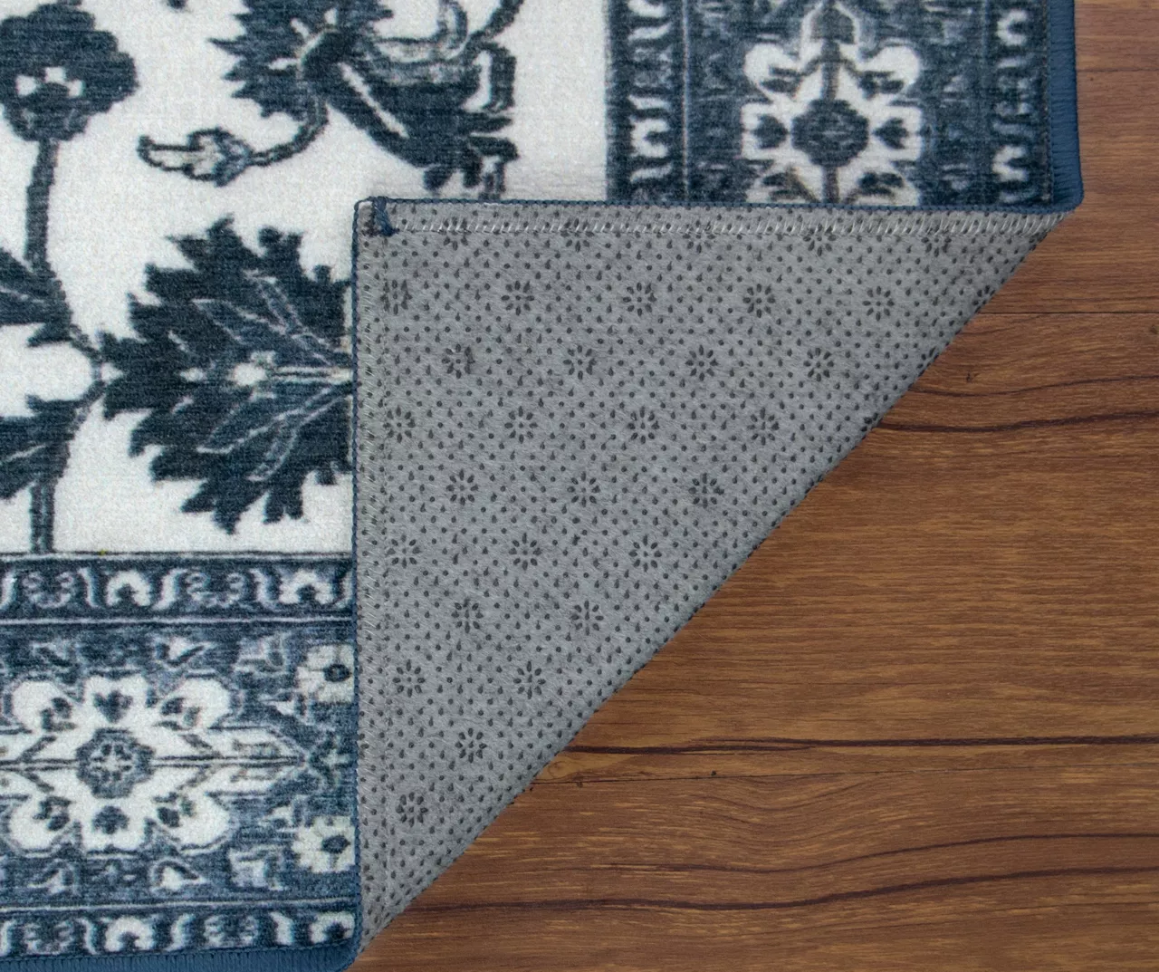Enjoy a touch of the traditional in your home with this elegant Ramage rug featuring an ornamental design with floral elements in a blue palette. My Magic Carpet is an eco-friendly, machine-washable, non-slip rug that is lightweight and easily fits into most washing machines. It’s durably designed to hold up through all of life’s wear and tear, and includes a non-slip patent-pending backing with a waterproof inner liner that stops spills and pet accidents from seeping through to the floor.