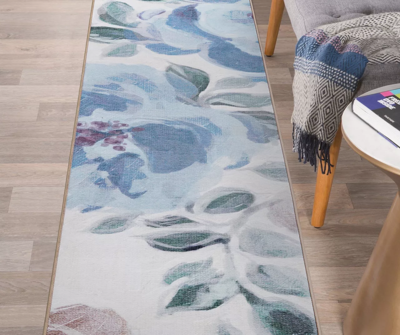 Spread some decorative elegance on your floors with this lovely area rug featuring a watercolor-style floral motif in azure shades. My Magic Carpet is an eco-friendly, machine-washable, non-slip rug that is lightweight and easily fits into most washing machines. It’s durably designed to hold up through all of life’s wear and tear, and includes a non-slip patent-pending backing with a waterproof inner liner that stops spills and pet accidents from seeping through to the floor.