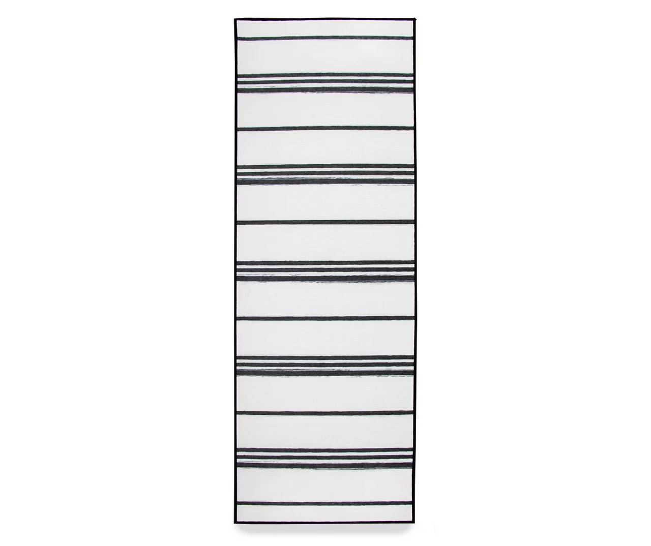 Lines of varying thicknesses stripe across this flatwoven rug that’s perfect for rooms with a contemporary aesthetic. This simple striped design comes on a slip, stain and waterproof rug that’s tough enough to handle any high-traffic areas in your home, office or RV. Protect your floors from spills and scratches and wash away germs with a full line of no-fuss rugs. My Magic Carpet is an eco-friendly alternative to traditional rugs. This rug is made of non-allergenic, stain-resistant microfiber polyester, with a waterproof inner liner and a non-slip backing.
