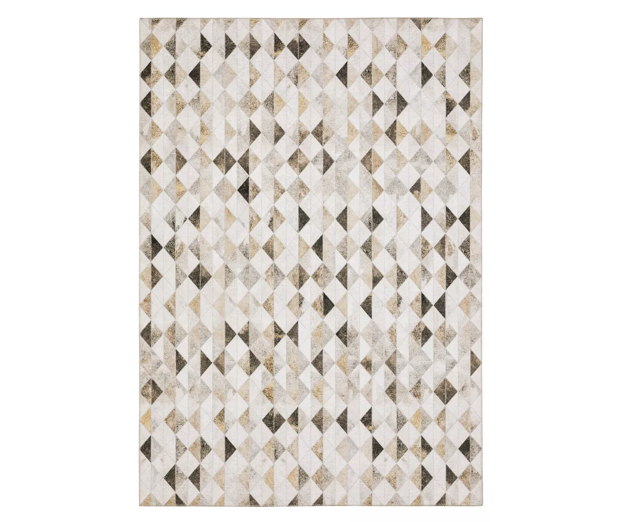 In the Myler collection, technology meets tradition through this geometric pattern area rug featuring a faux hide texture recreated on a soft stain- and fade-resistant polyester pile. The result is an easy-to-care-for rug that’s low-profile and comfy, with all the appeal of a one-of-a-kind piece in neutral shades of gray and beige.