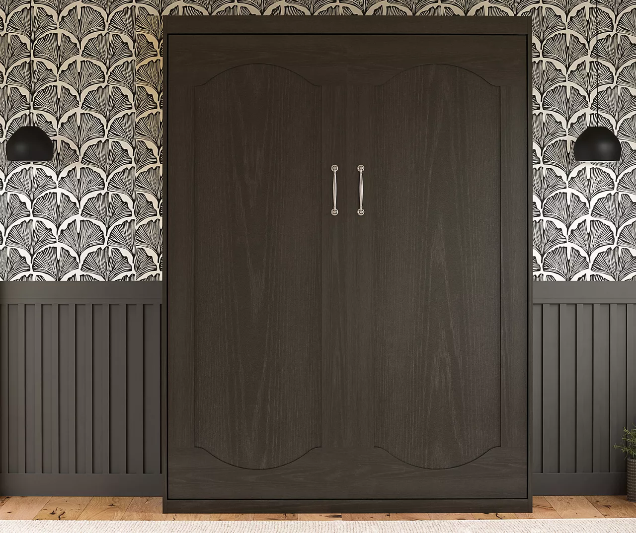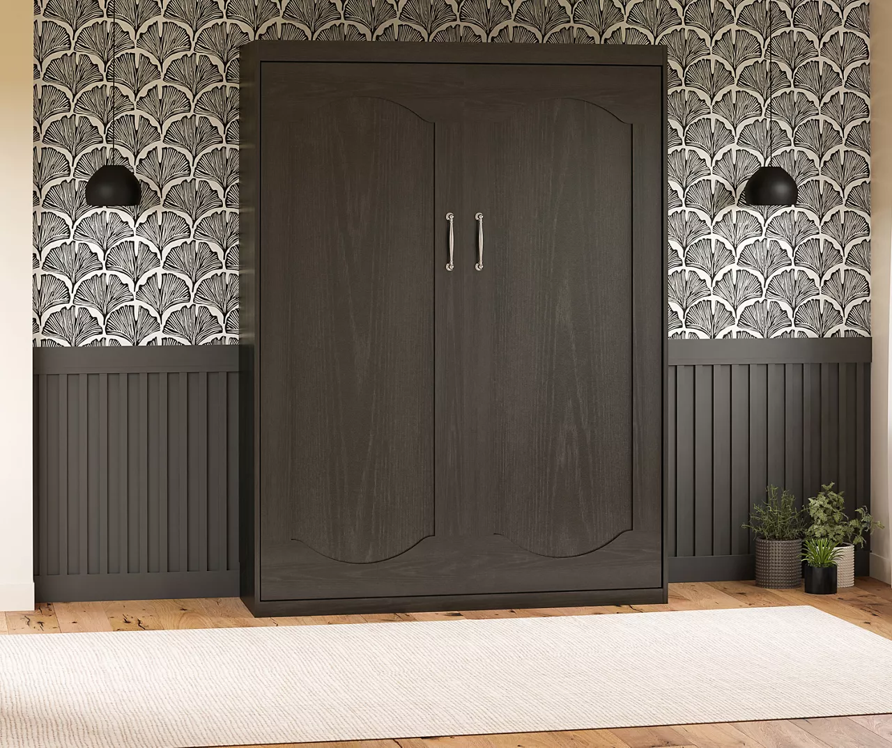 • Space-saving Murphey wall bed fits a full-size mattress up to 10″ thick