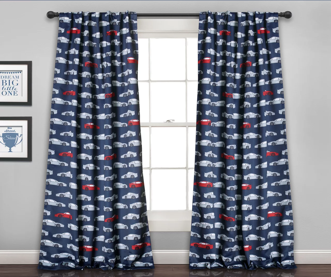 - Room-darkening curtain panels help filter out sunlight and provide privacy