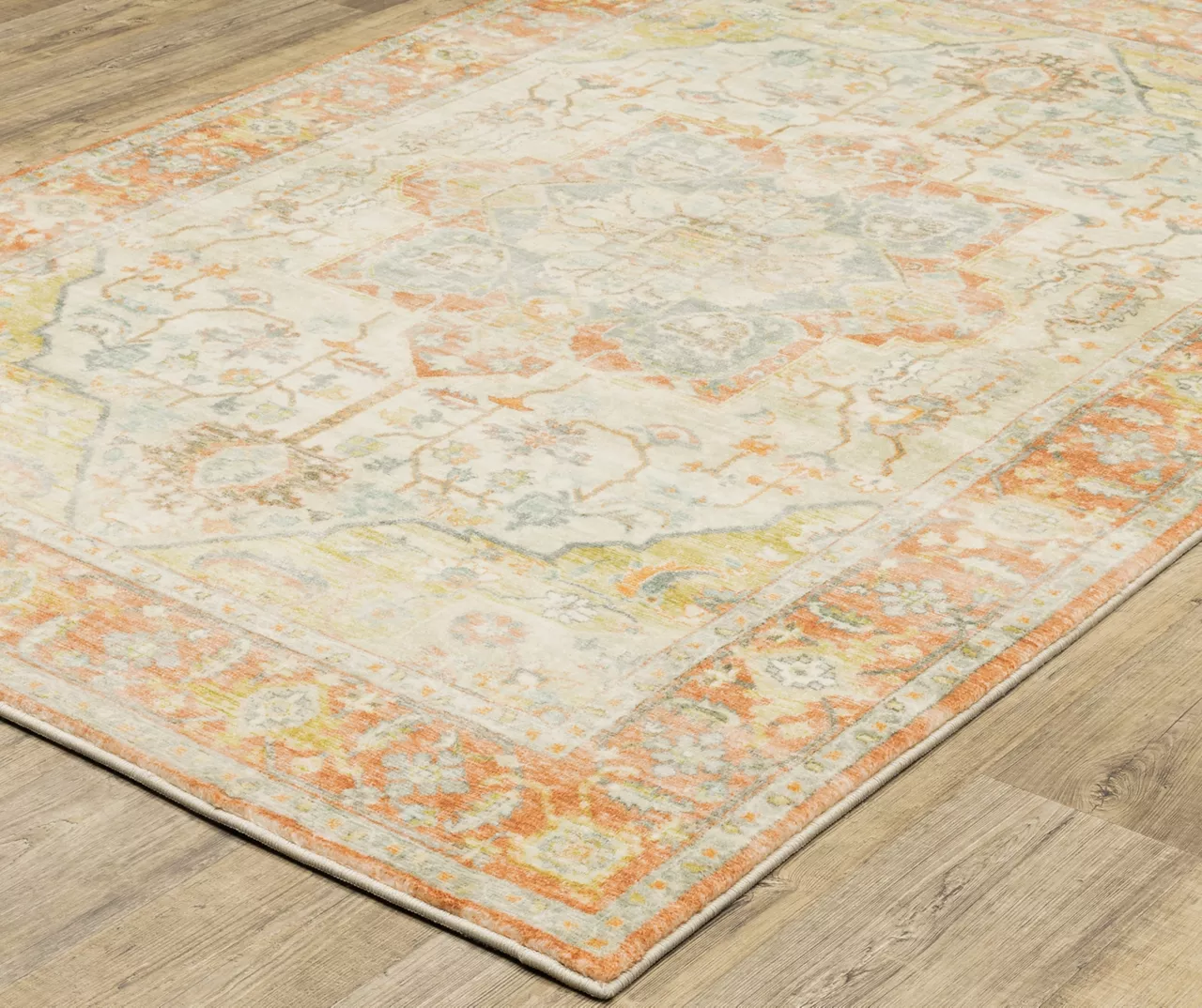 The Savage collection is a traditional pick for your living space, defined by a distressed floral medallion design on a soft stain- and fade-resistant polyester pile. It features an array of on-trend shades of bright orange and blue as well as warm brown, green and beige that effortlessly complements many decor styles.