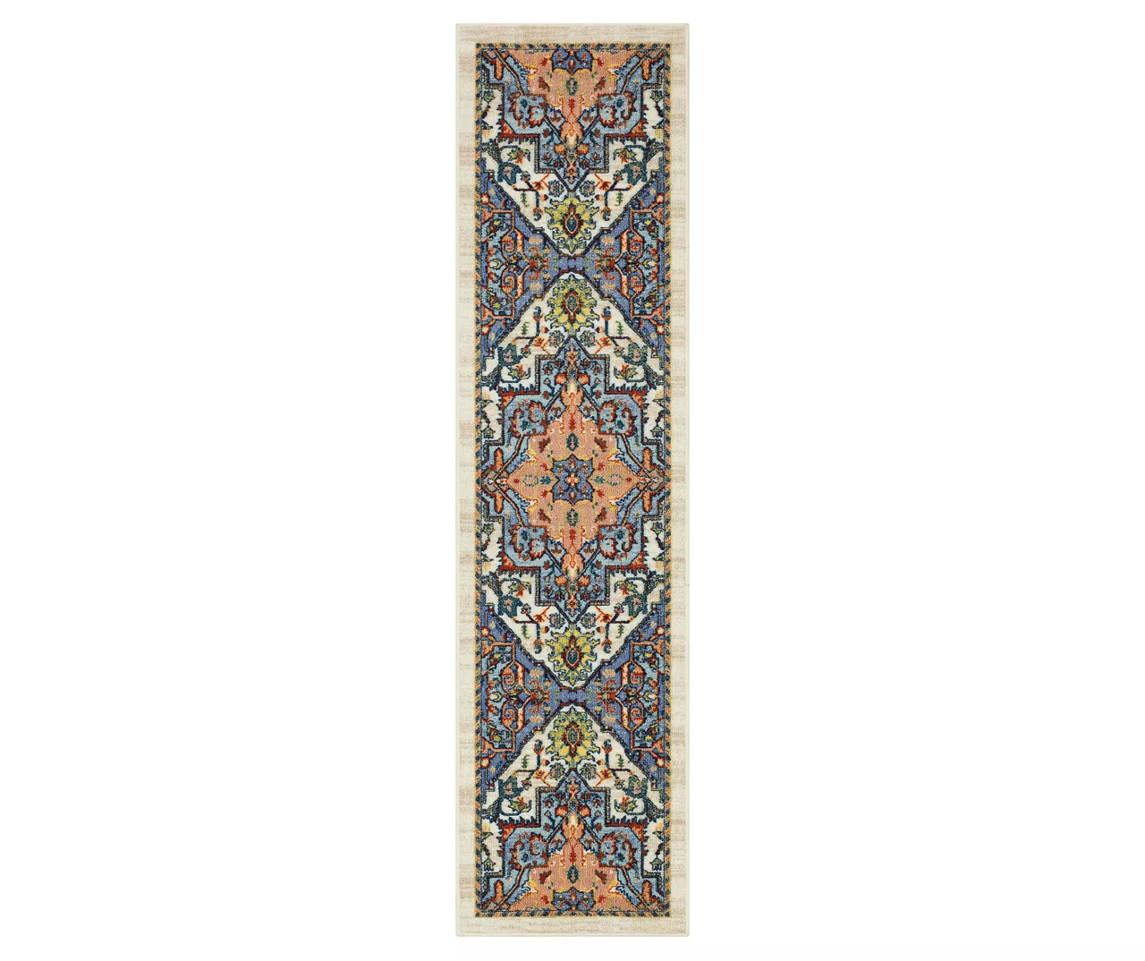 The Mohawk Home Tethys area rug features an ornamental design motif in a lovely bright color palette that is sure to perfectly accent any room. The low pile is created with Mohawk’s premium wear-dated nylon fiber for a soft touch and dependable durability. This rug is sure to make an elegant addition to a bedroom or other living space and the non-skid latex backing helps to keep things in place.