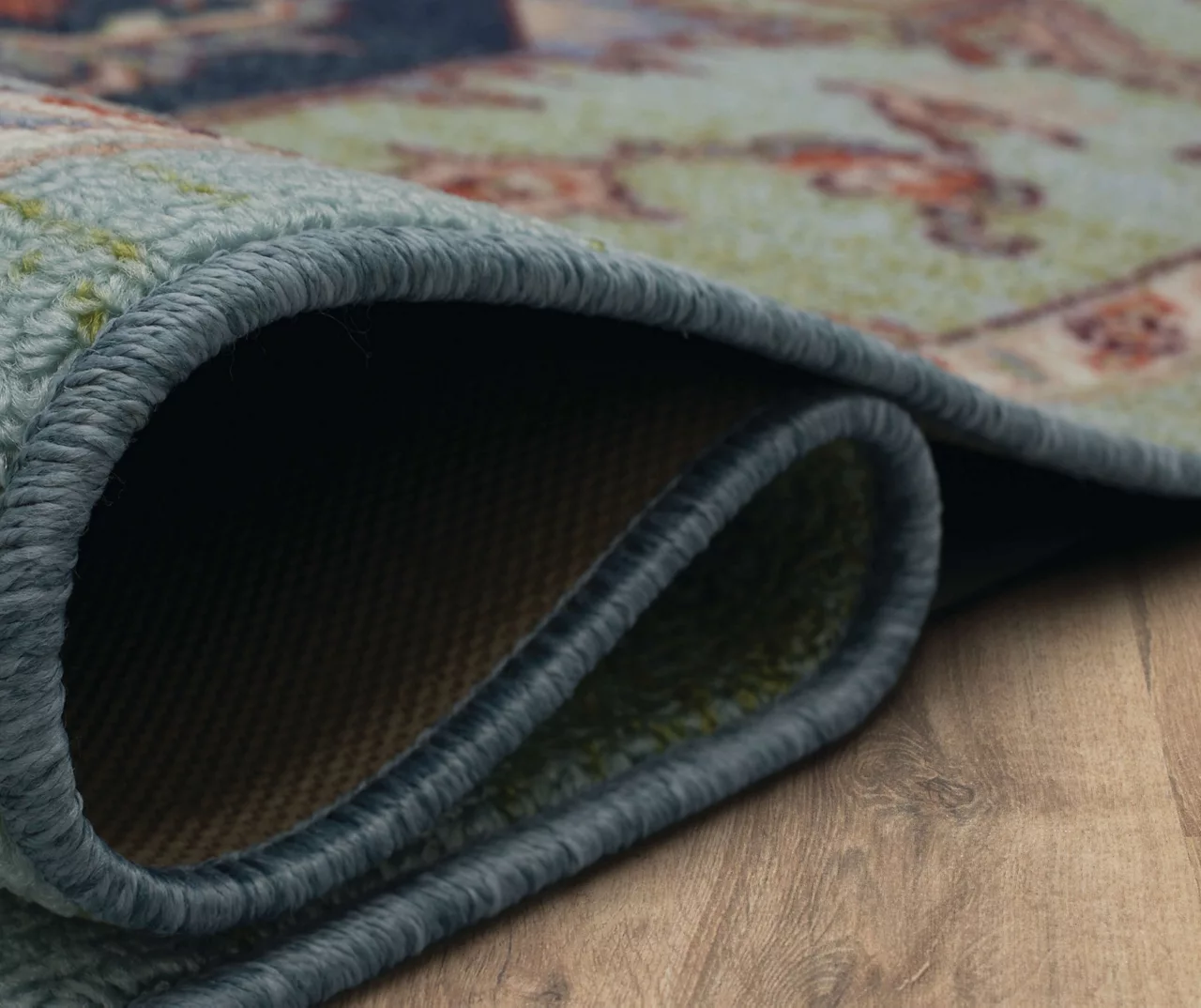 The Mohawk Home Tethys area rug features an ornamental design motif in a bright palette that is sure to bring a pop of color to any room. The low pile is created with Mohawk’s premium wear-dated nylon fiber for a soft touch and dependable durability. This rug is sure to make an elegant addition to a bedroom or other living space and the non-skid latex backing helps to keep things in place.