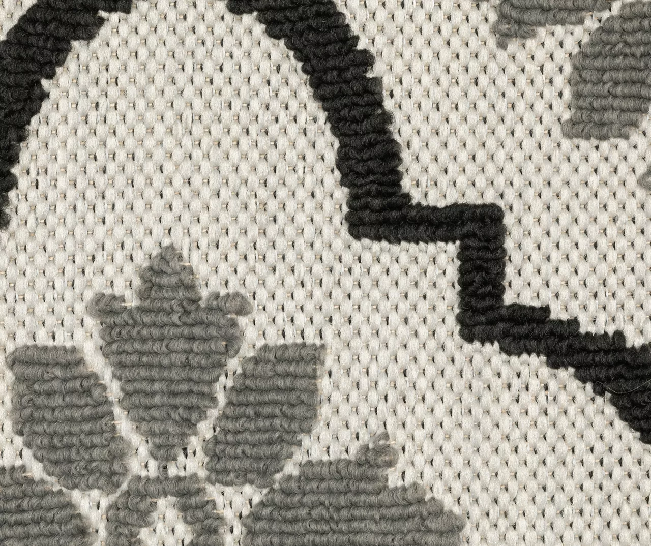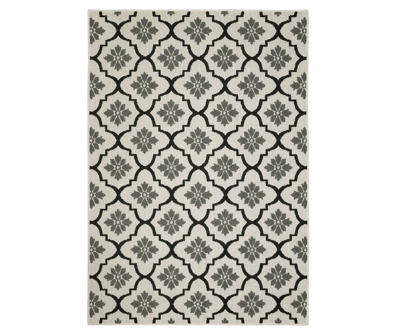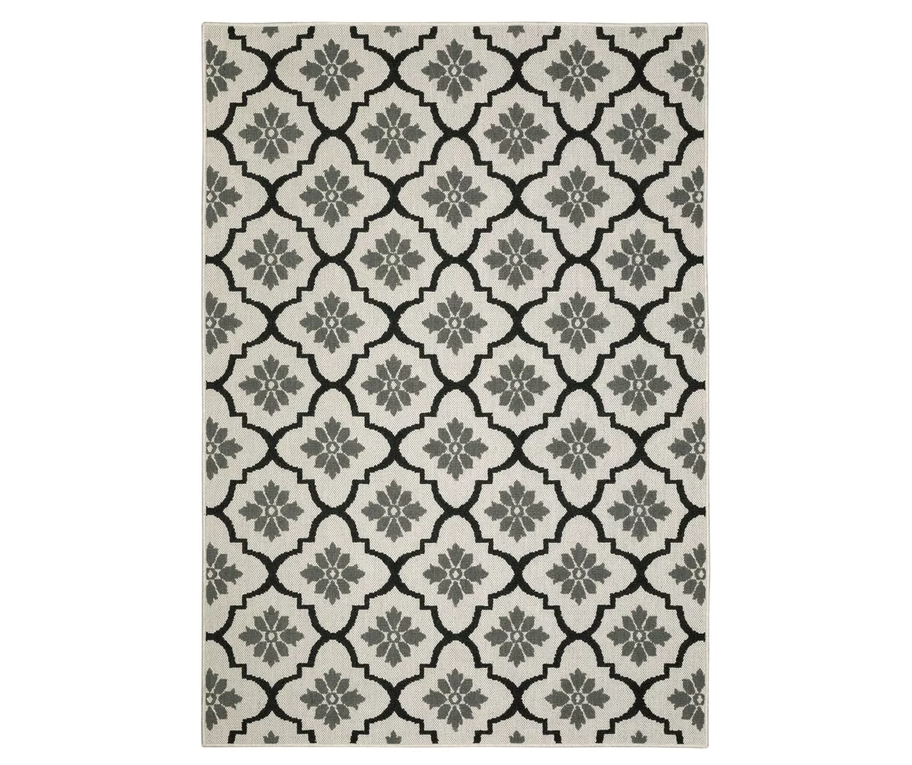 The unique power-loomed construction of the Torgnea collection features both flatwoven and loop piles, giving the rug a soft, textured feel underfoot that’s durable enough to enjoy both indoors and outdoors. The cozy fibers are defined by an elegant floral quatrefoil pattern in bold contrast shades of black and beige for a modern decorative complement that easily fits into your living and outdoor spaces.