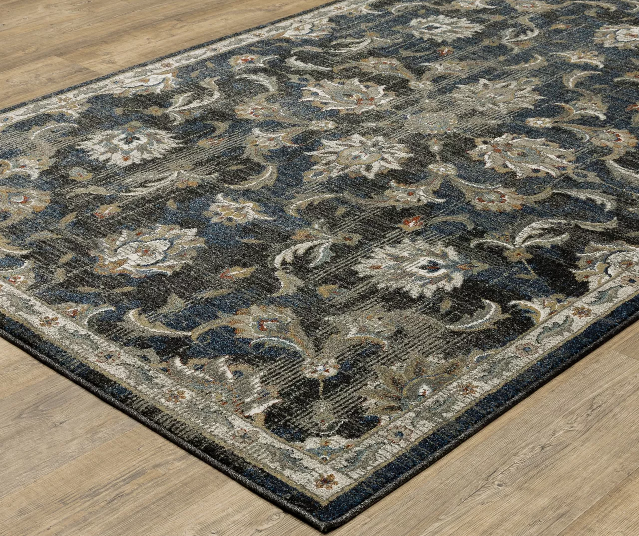 The Veliko collection is power-loomed from soft, textured polypropylene fibers boasting a rich color palette in deep shades of blue as well as warm neutral tones of brown, charcoal, taupe and white. The dense pile flaunts a traditional floral design that effortlessly complements and elevates your living space.