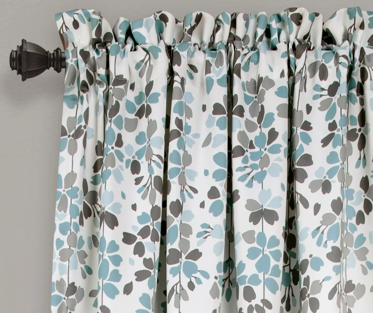 - Beautiful flowers cascade down the top of these panels in blue and gray tones