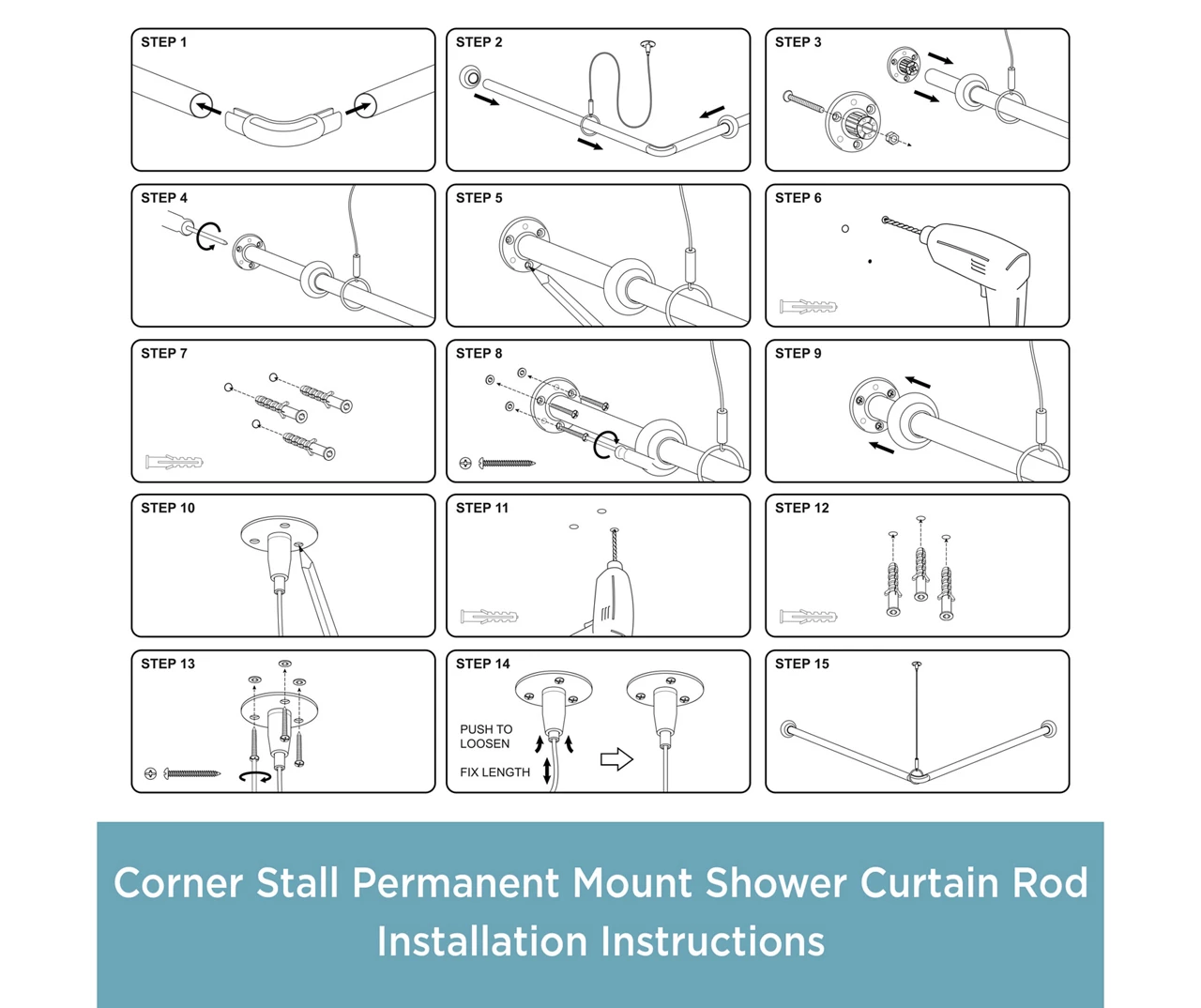 Add extra room to your shower with this L-shaped curtain rod from Kenney. Great for corner spaces, this permanent shower rod measures 36″ by 36″. It is made of heavy-duty steel, designed to be both durable and rust resistant. The simple L-shape is the perfect solution for easily hanging shower curtains and liners. Suitable for single apartments, condos or smaller bathrooms. Screws and mounting brackets are included for secure permanent installation for this corner shower curtain rod.