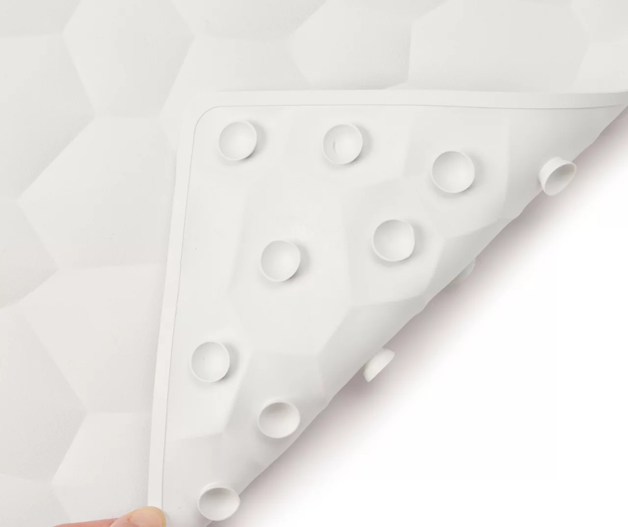 Create a comfy platform for your showers and baths with this rubber mat from Kenney. The decorative stone design is soft underfoot and suction cups help to keep it in place for added peace of mind.