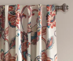 Aster Ivory & Red Room-Darkening Back Tab Curtain Panel Pair, (84″)
